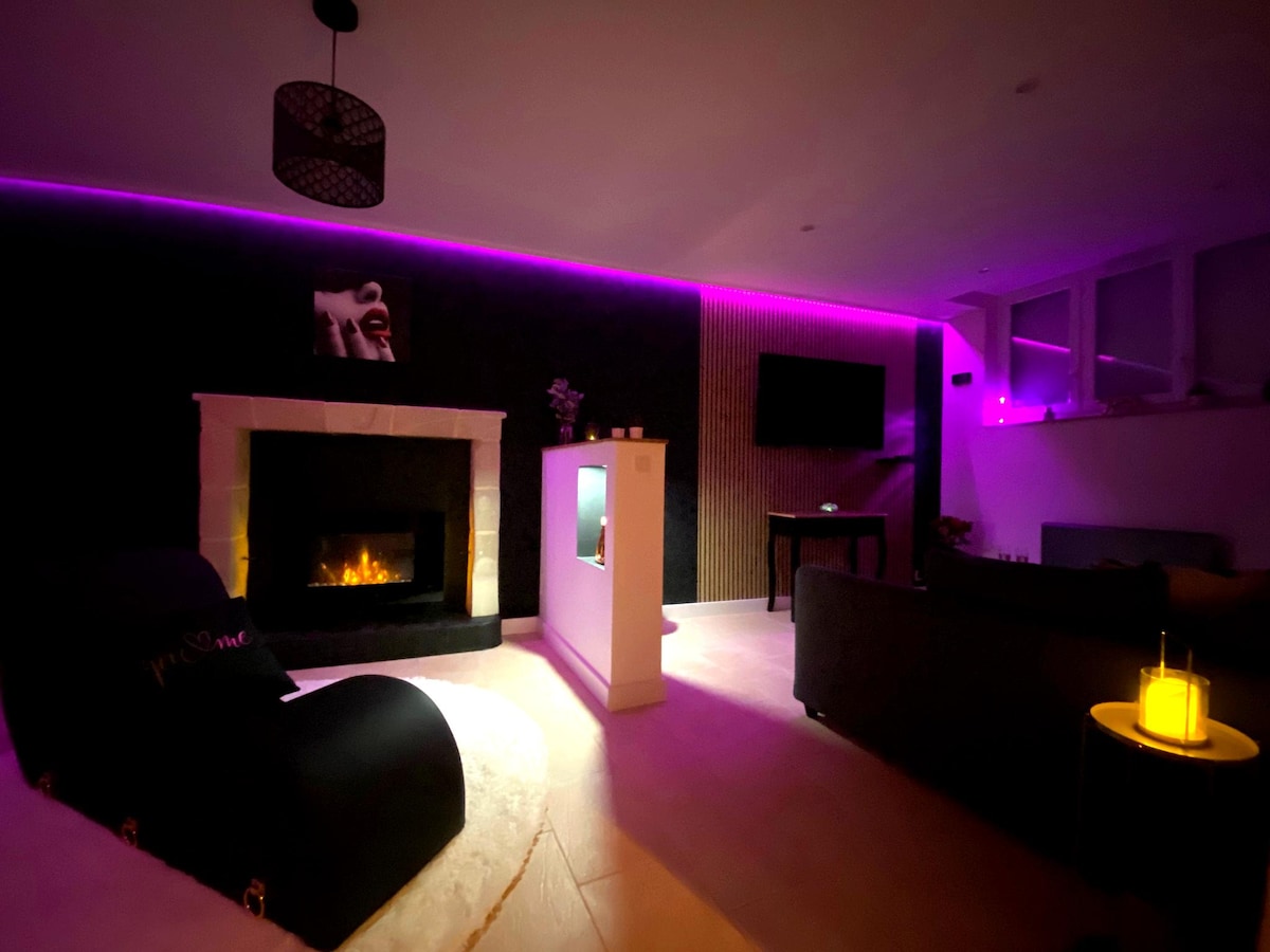 お客様の健康に貢献する70㎡の家で、思い出に残るひとときをお過ごしください。スイートには、2名様が横たわることができるスパと2名様用のサウナがあります。広々とした寝室には、あなたの恋愛生活を刺激するための設備(アンドレアス十字架、タンドラソファ、ベッドの上の鏡など)が備わっています。ビデオプロジェクターと設備の整ったキッチンを備えたリビングルーム。LED照明でコントロール可能な当宿泊施設の装飾と雰囲気をお楽しみください。