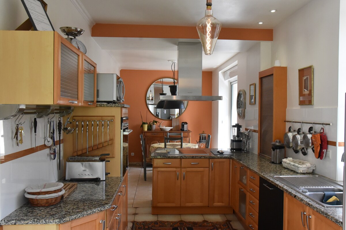 独立したメゾン、囲まれた庭と屋根付きテラス。 質の高い設備(調理器具付きのキッチン、新品の快適なラテックスマットレスなど)と快適さ(床暖房、薪ストーブなど)。 季節ごとの装飾とフリーマーケットのお宝! ジャグジーでリラックスしたひとときをお楽しみください!(3泊未満のご宿泊の場合はサービスに含まれません。現地でのご宿泊の場合は25ユーロのパッケージ料金がかかります)。 観光用家具の分類****(4つ星)、「シャルム・ブリタニー」。