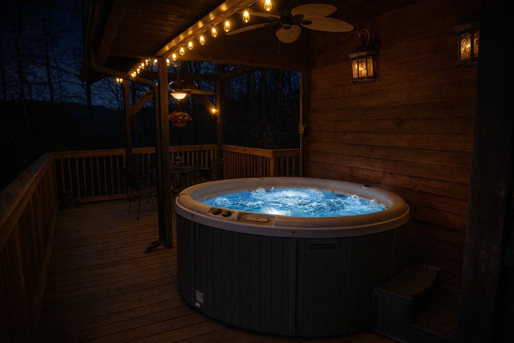ジャグジーと焚き火台:フレンチバーグでのロマンチックな休暇