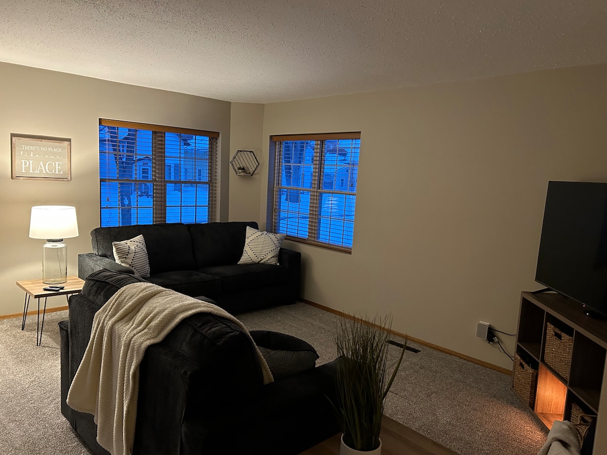 この快適で新しく改装されたコンドミニアムをお楽しみください。 ノースダコタ州グランドフォークスの中心部にあります。 ダウンタウン、食料品店、ブティック、ジム、UND、レストランの近くです。 この2階のコンドミニアムには、クイーンベッド2台、シングルエアマットレス1台、シャワー付きバスルーム1室があります。 ユニット内に洗濯機と乾燥機があり、すべてのゲストがご利用いただけます。 設備の整ったキッチンと最大4名様まで収容できる小さなダイニングエリアがあります。 無料の敷地内駐車場とWi-Fi接続があります。 あなたのご滞在を楽しみにしております!