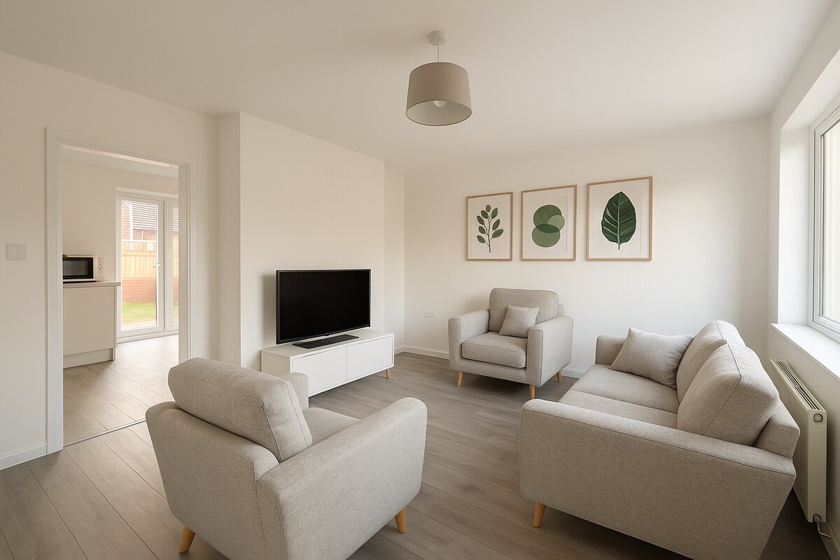 ニューカッスル競馬場の郊外にある素晴らしいロケーションです。 新しく改装された、フルサービスの完璧な住居があなたを待っています。 宿泊施設には以下が含まれます: - ワードローブ付きのダブルベッドルーム2室 1階にフルバスルーム - 1階に個別のトイレ フル装備のキッチン(冷凍冷蔵庫、洗濯機、充実したコーヒーバー) 路上駐車場が充実しており、路上駐車場も安全です。 - 個別の芝生の庭園エリア 60インチテレビ(Netflix、ITVXなど)を備えたメディアウォール ペットは禁止です。