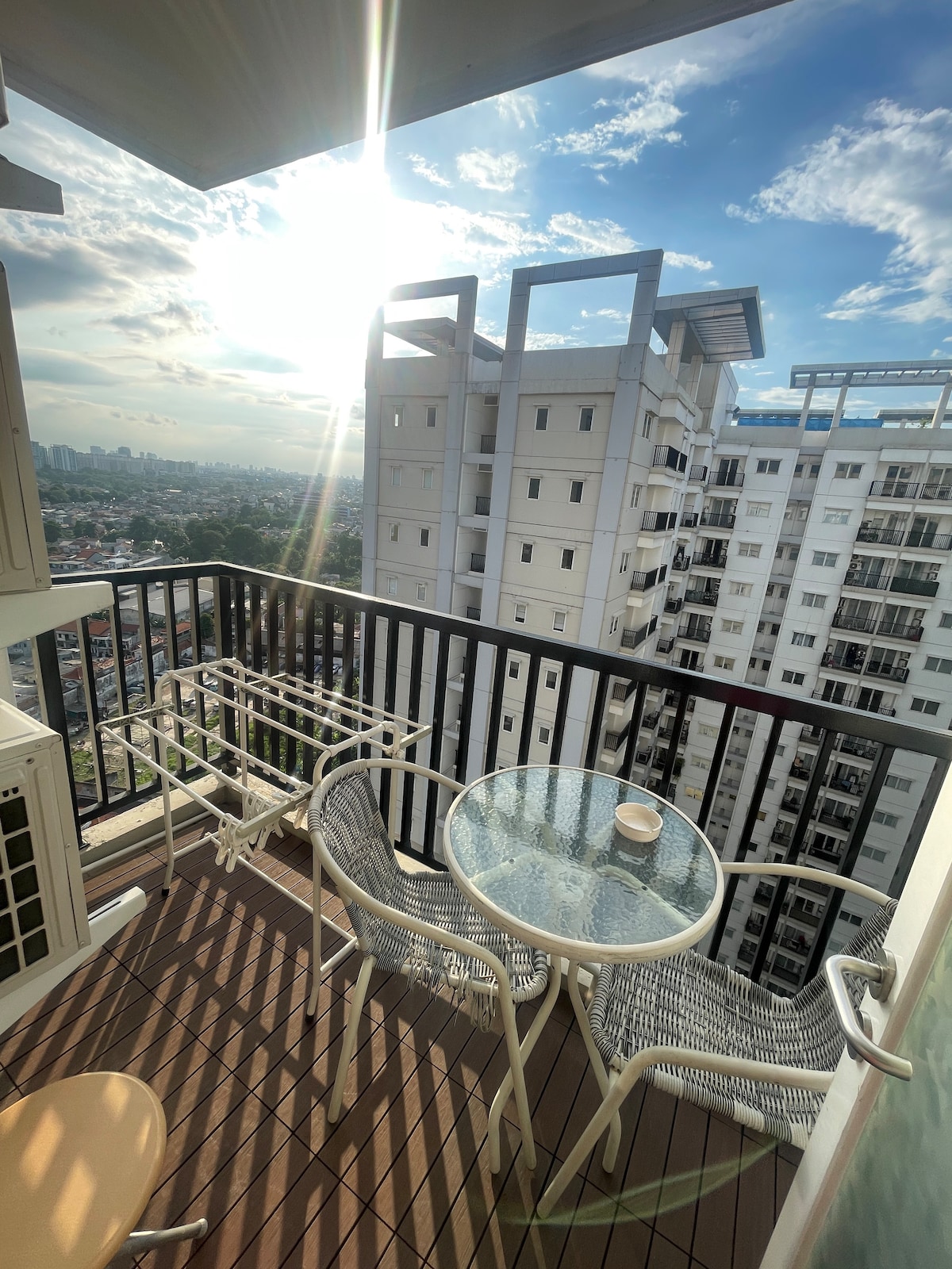 南ジャカルタのこの静かでおしゃれなお部屋で、のんびりとおくつろぎください。7ヘクタールのエコパークのすぐ隣です。 インダストリアルデザインの豪華なスタジオフルファニッシュアパートメント:設備の整ったキッチン(コンロ、冷蔵庫、ネスプレッソマシン、調理器具、食器)、43インチアンドロイドテレビ、ソファ、クイーンベッド、温水シャワー付きバスルーム。 建物の施設には、プール、ジャグジー、ジム、駐車スペースがあります。 22階からはジャカルタ市の絶景を一望できます。