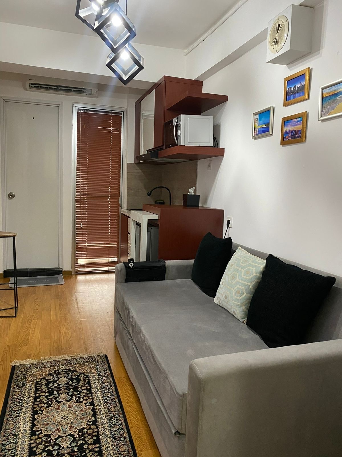 Small Apartement 2 bedrooms 1 bathroom 27 sqm (Bassura City) Pool, mall, food and coffee shop Smart Tv Wardrobe Kitchen & Complete Cooking stuff Water dispenser Fridge New furnitures 2 AC (Main Bedroom & living room) Wifi Sofa Bed Located in East Jakarta but easy access to everywhere. Close from toll area. Affordable price with complete facilities. Staff cleaning every 3 days Minimum stay is 2 days.
