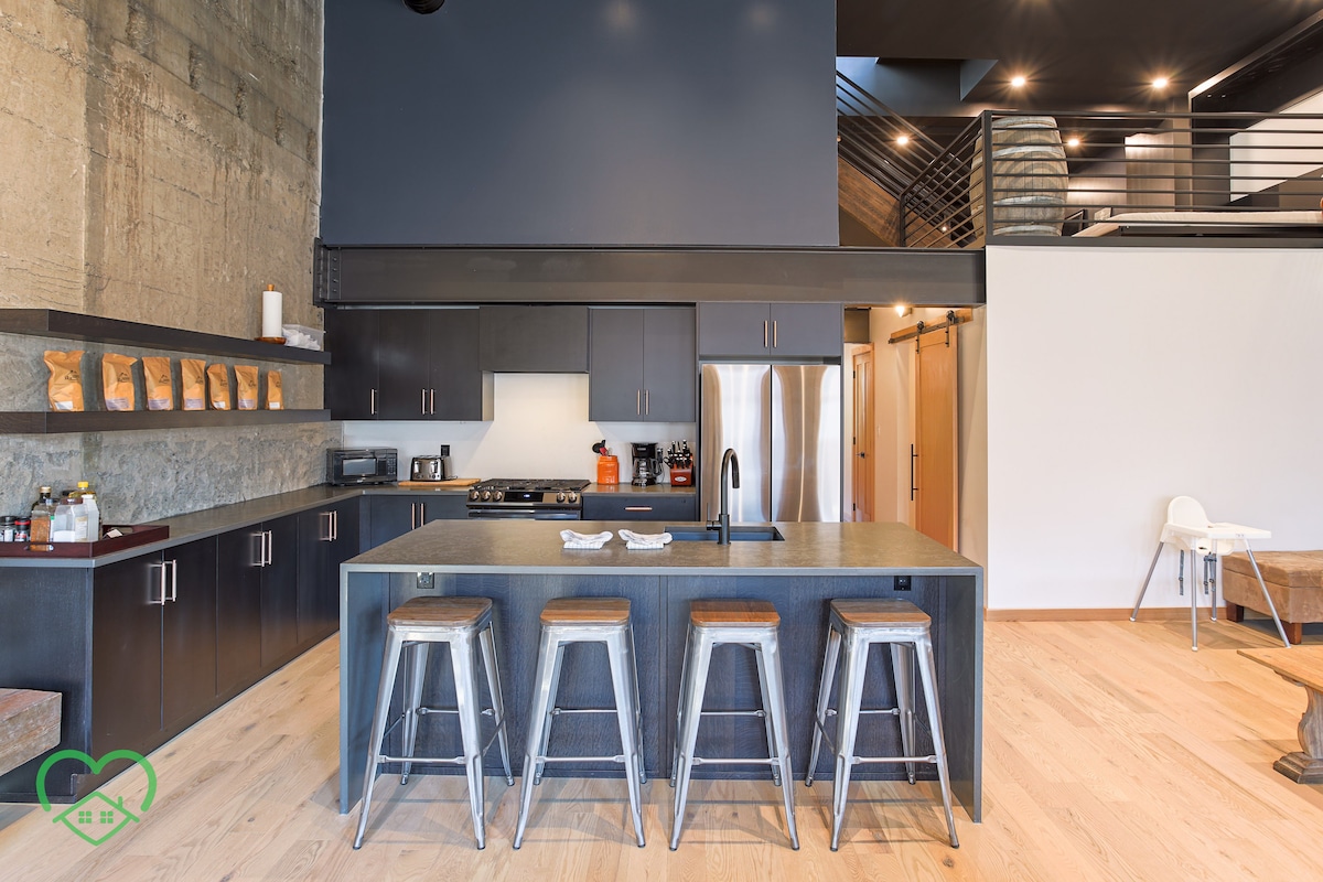 ファーニーの歴史的なダウンタウンの中心部にある、インダストリアルな魅力と現代的なエレガンスが融合した、都市の聖域へようこそ。このスタイリッシュなロフトには、素晴らしい山の景色を望むプライベート屋上ホットタブ、インダストリアルなインテリア、設備の整ったキッチンが備わっています。高速Wi-Fiをご利用いただけます。また、ファーニーで人気のショップ、カフェ、トレイルまで徒歩でアクセスでき、ペット同伴も可能です。快適さ、スタイル、ロケーションをすべて求めるカップルや少人数のグループに最適です。