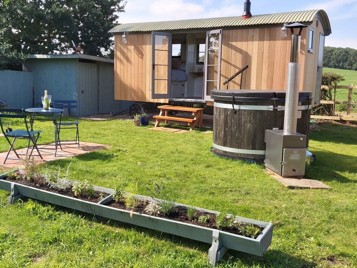 Private, rural Shepherd’s hut with luxury hot tub