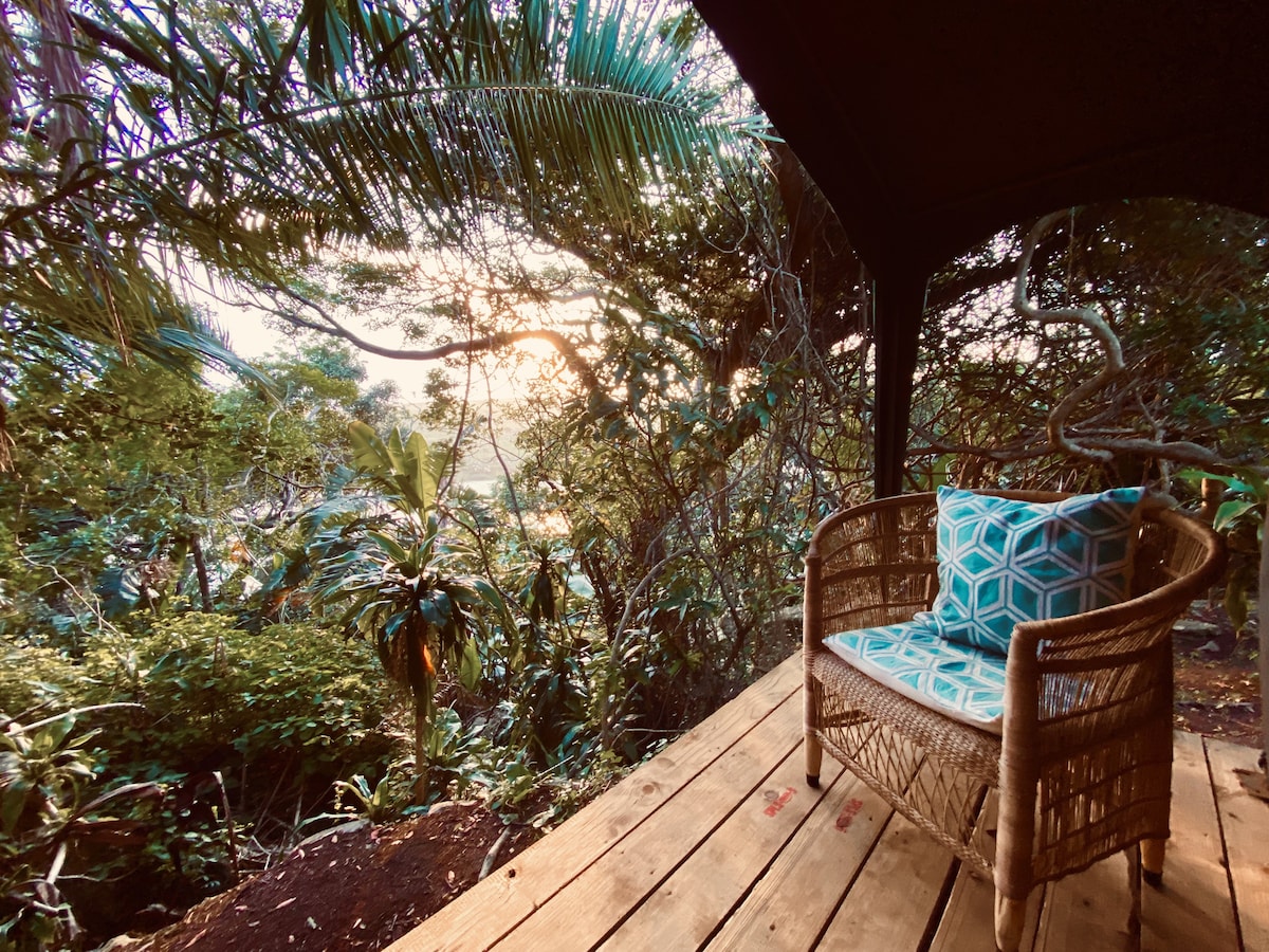 Escape to a romantic treetop glamping retreat in Knysna, where luxury meets nature. Nestled among the trees, this enchanting hideaway features a queen-size bed, cozy sitting room, and dreamy Squirrel’s Nest hammock made for two. Enjoy a shower that opens to the forest, a full kitchen, and braai facilities. Perfect for couples seeking privacy, comfort, and a magical escape under the stars. Breathe in the fresh forest air, and fall asleep to the sounds of nature. 200m forest walk to unit.