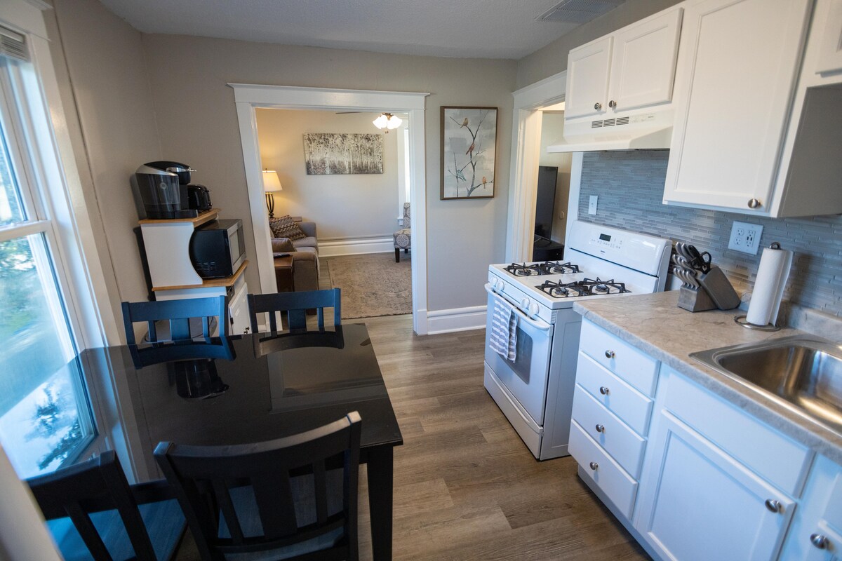 Professionally cleaned with medical-grade disinfectant. Special discounts for long term stays and medical professionals. Galloway House is equipped with everything you need to eat, sleep, shower and be merry. Fully equipped kitchen, two bedrooms with queen beds, one bathroom, living room, and dining room (seats 8). Perfect location to take advantage of all that downtown EauClaire has to offer. Walking distance bars, restaurants, coffee shops, swimming, kayaking, tubing, etc.