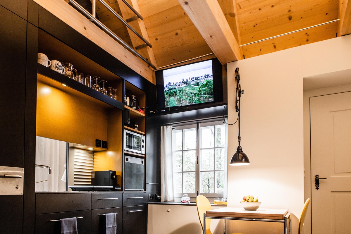 ゲストハウスは私たちの農場の隣にあります。 田舎にありますが、ルツェルン市から車でわずか10分です。 リギ山とピラトゥス山の素晴らしい景色が眺められます。 1部屋と素敵なギャラリーのある新しくモダンなアパートです。 カップルや少人数のご家族に最適な宿泊先です(寝室はありません! )。 バスルームにはバスタブとシャワーがあります。 設備の整ったキッチンがあります。
