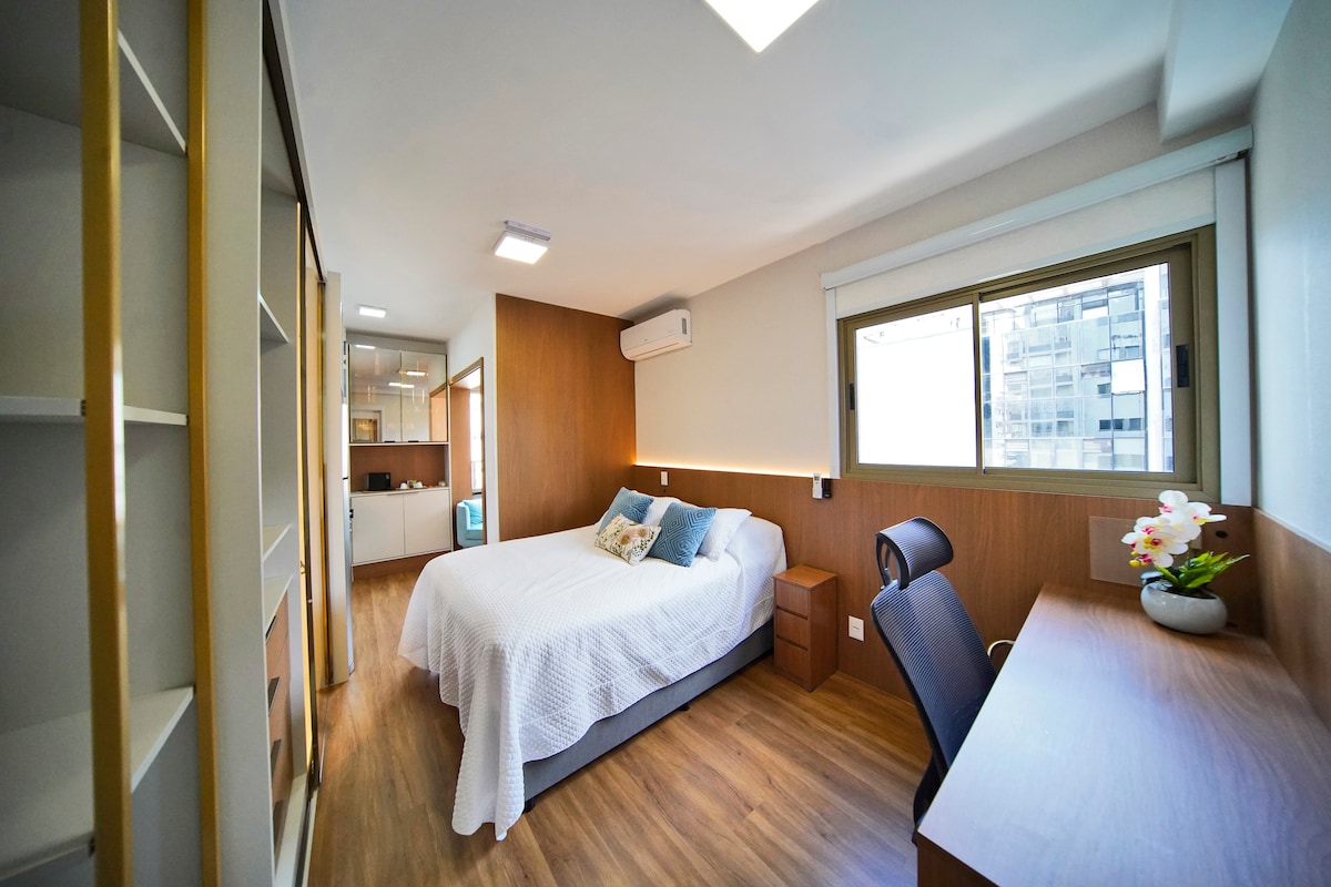 Studio Novo à Lado da Oscar Freire! 24平方メートルの居心地の良いワンルームに滞在し、実用性とスタイルでサンパウロを楽しみたい方にぴったりです。 象徴的なOscar Freire Streetからわずか数歩のところにあり、市内で最も洗練された活気に満ちたエリアの中心にあり、高級ショップ、有名なレストラン、魅力的なカフェに囲まれています。 静かで立地の良い場所。
