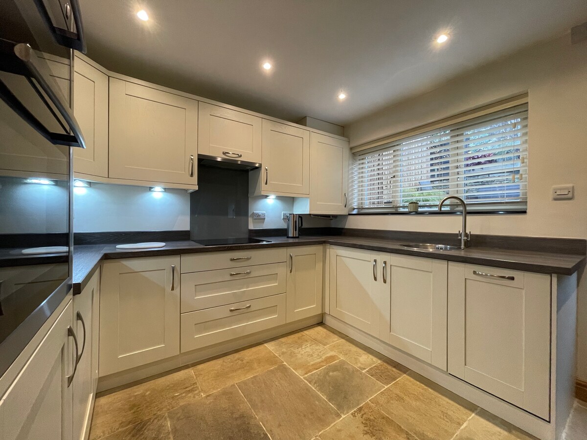 キングサイズとダブルサイズのベッドルームを備えたモダンな一軒家のバンガローは、ベイクウェルの中心部まで徒歩わずか10分の静かな通りにあります。 宿泊施設には、広々としたラウンジと成熟した庭園を見下ろすコンサバトリー、設備の整ったキッチン、そして十分な車道駐車場があります。 チャッツワース・ハウス、ハドン・ホール、風光明媚な田園地帯の散策など、ピーク・ディストリクトを探索するのに理想的な拠点です。ベイクウェルには、さまざまなレストラン、カフェ、伝統的なパブ、独立系の店舗、スーパー、そして毎週開催されるマーケットがあります。