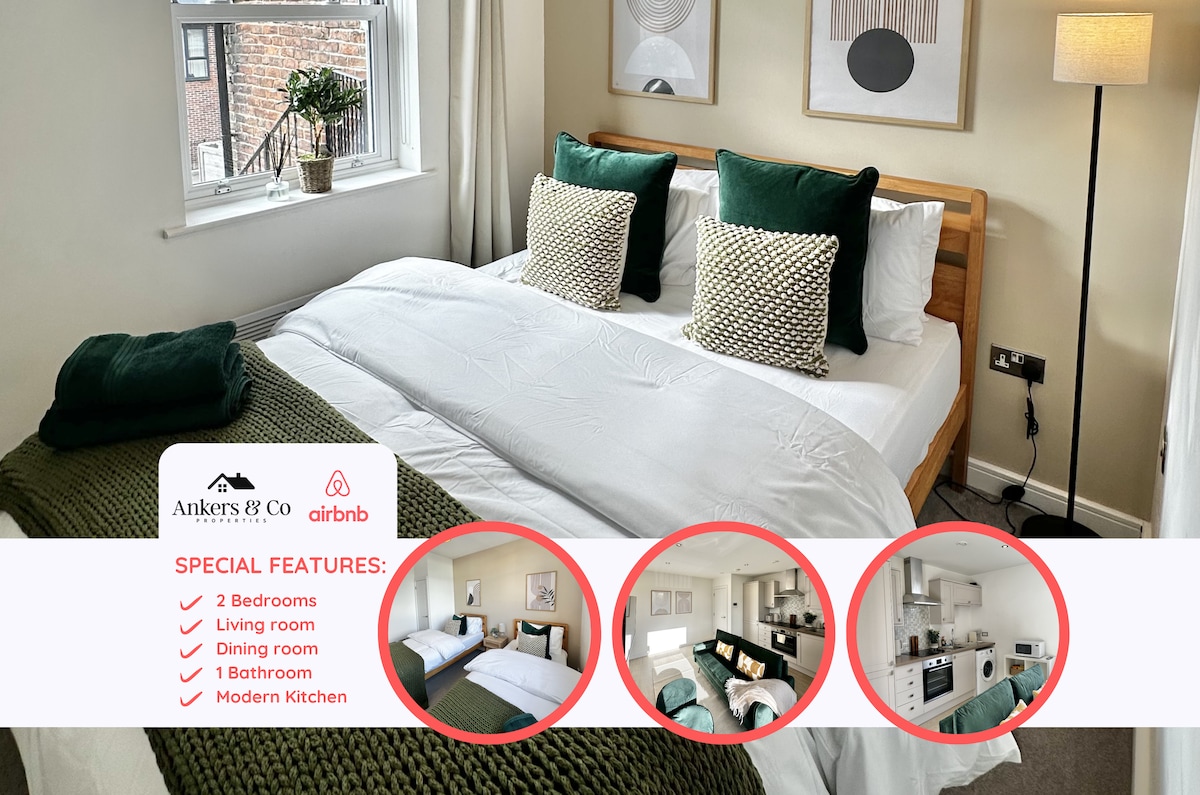 Book Today With⤵️ ★Ankers & Co Management Short Lets & Serviced Accommodation Manchester★ ✓ Special Offer Available • 2 Bedroom Apartment • Sleeps up to 4 Guests • Bedroom 1 – 1 x King Bed • Bedroom 2 – 2 x Single Beds • Living Room – 1 x Sofa • 1 Full Family Bathroom • Fully Equipped Modern Kitchen • Free 500 Mbps Super-Fast Fibre WiFi • Two Private Parking Spaces • Just 6 minutes from Stepping Hill Hospital