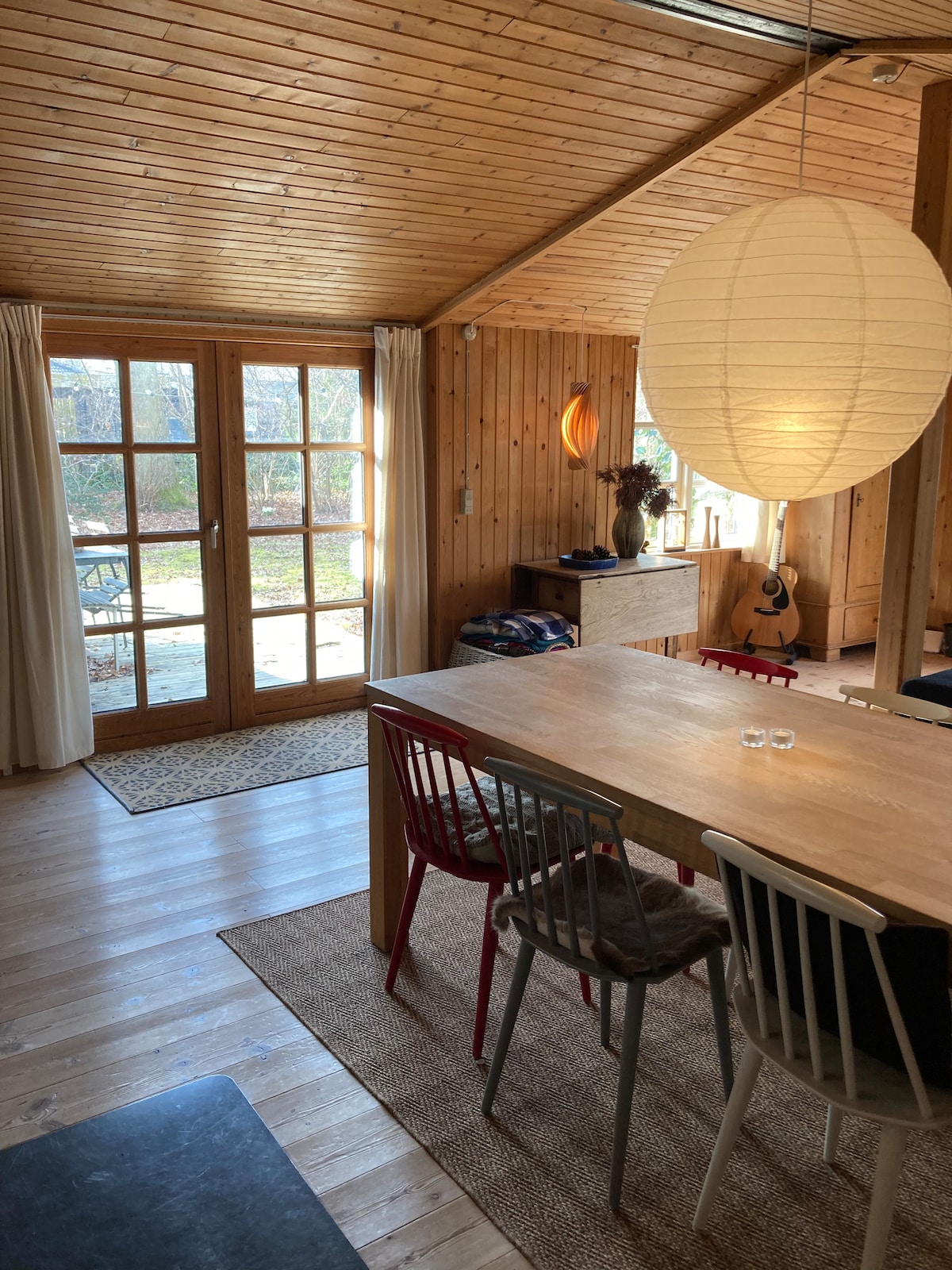 冷蔵庫、電子レンジ、コンロ、電気ミニオーブン付きのキッチンを備えた快適で新しい木造の小屋。 小屋には床暖房。トイレ、30リットルの温水タンク付きシャワー(短時間シャワー) ダブルベッド、ソファ、ダイニングテーブル、小さなテラス。テレビとWi-Fi。 小屋は私たちの家の近くの庭にあります。 私たちは、森の端にあるHjortshøj村の外に住んでおり、高速道路に近いです。 犬は歓迎です。 ベッドリネンとタオルをご用意しています。 オーフスまでの距離は12キロ、公共交通機関まで600メートル。 小屋は長期滞在には適していません。