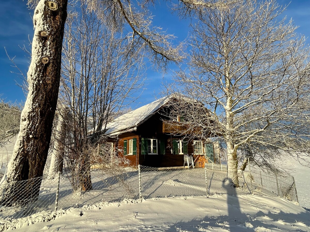 居心地がよくスタイリッシュに装飾されたアパートは、100年前の旧校舎の2階にあります。家は、海抜約1000メートルのアルプス山麓のエメンタールの丘の上にあります。静けさを求め、動物や自然が好きな方は、私たちの家にぴったりです。 家のすぐ後ろには美しい森があり、バルコニーからはジュラからベルナーアルペンまでの素晴らしい景色を眺めることができます。ハイキングコースやサイクリングルートは、家のすぐ目の前です。