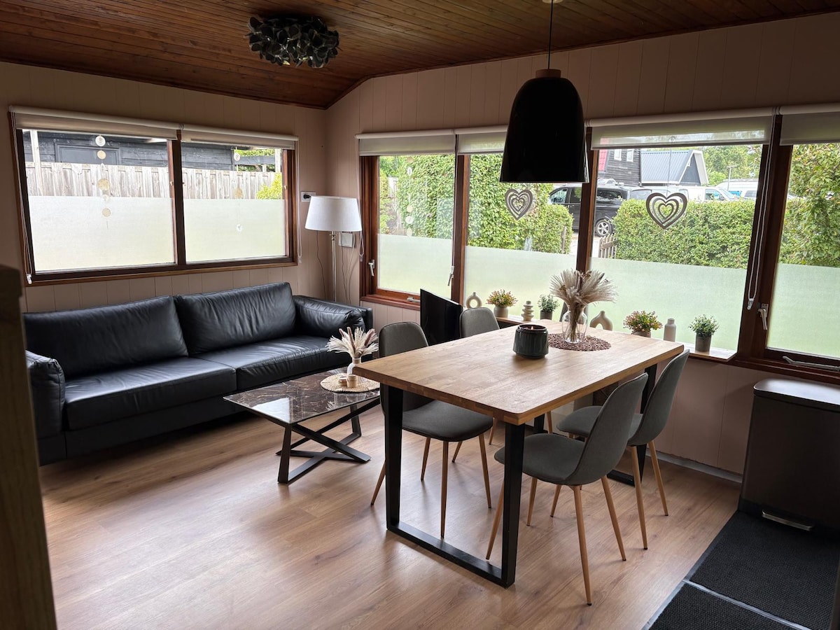 マーケルメール(1km)の新しいシティビーチと、魅力的なホーン市の近くの静かなキャンプ場にある、大きなベランダと無料のWifi+Netflixを備えた快適なシャレー。アムステルダム、フォーレンダム、アルクマール、エンクフイゼンに近い。 キャンプ場には、カヌーレンタル、ランドリー、遊び場、卓球台、釣り場、大きな屋外テラス付きレストラン、キャンプショップ(温かいサンドイッチなど)付きレセプションなど、さまざまな設備があります。 車での移動時間:フォーレンダム15分、アムステルダム25分、北海35分。
