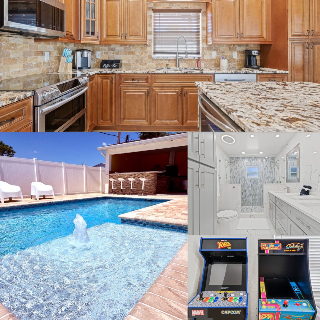 温水プールとゲームセンターを備えたプライベートオアシス!