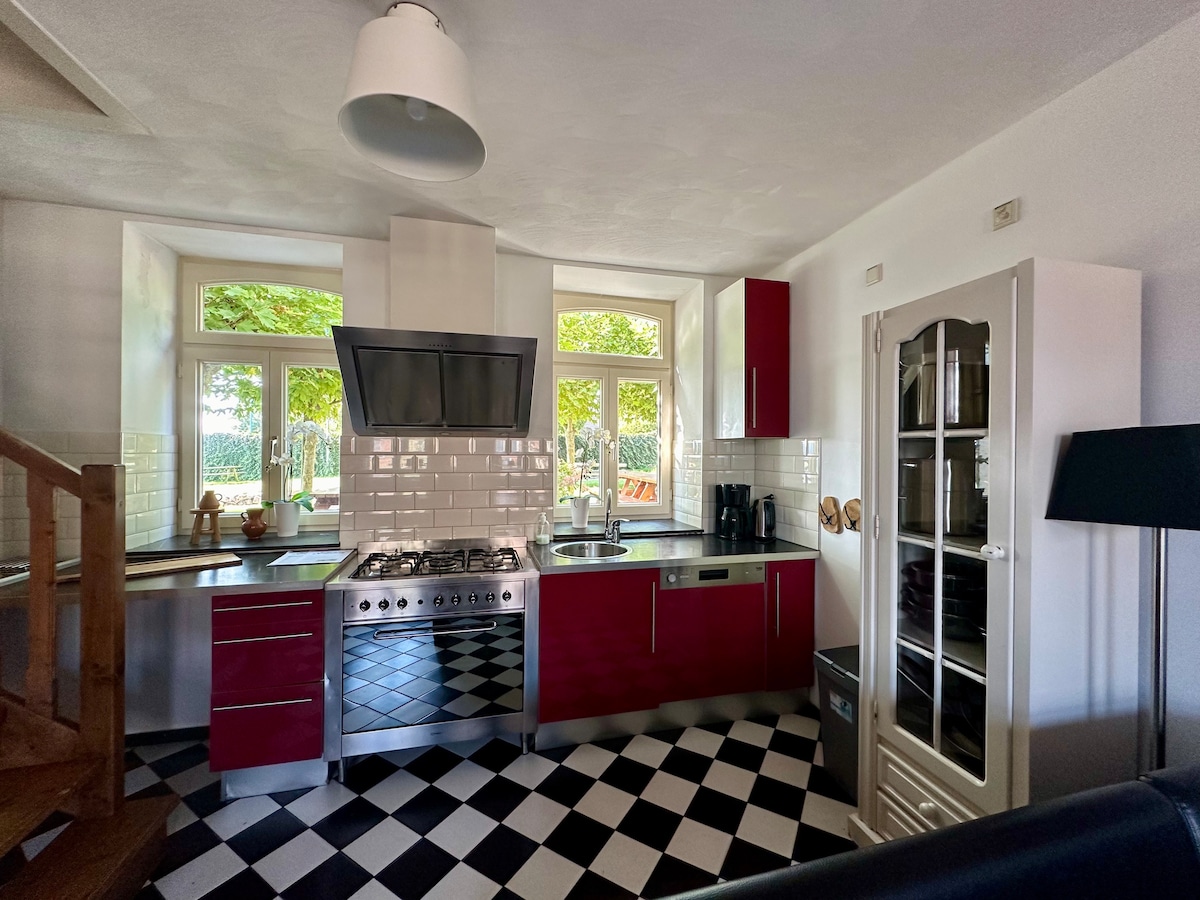 マース川、マース湖、シント・ピーターズベルグの美しい景色を眺めながらリラックスできます。マーストリヒト中心部から自転車で10分、100%の禅の世界です。 1910年の家は、現在自然保護区として保護されているSint-Pietersbergから採取された石灰岩の砂岩であるMERGELで建てられています。2020年から2021年にかけて、細部にまでこだわって全面改装されました。最新の技術と非常に建築的で洗練された要素を組み合わせて、本物の要素と素材を最大限に再利用しました。サウナあり。