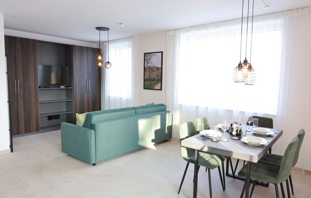 町の端にある静かな袋小路にある、サンテラス付きの美しくスタイリッシュなアパートメント(40平方メートル)。 新しく改装された、完全装備のキッチン、広々としたバスルーム。 スーツケースやその他のものを収納できる収納スペース。 ホストの家の前に自転車ガレージと無料駐車場があります。サンクト・マルガレテン(オペラ祭)、ルスト(ノイジーデル湖畔のワインの街)、モルビッシュ(オペレッタ)まで車で10 ~ 20分、アイゼンシュタット(ハイドンの街)まで5分です。 すべてが自転車で快適にアクセスできます。