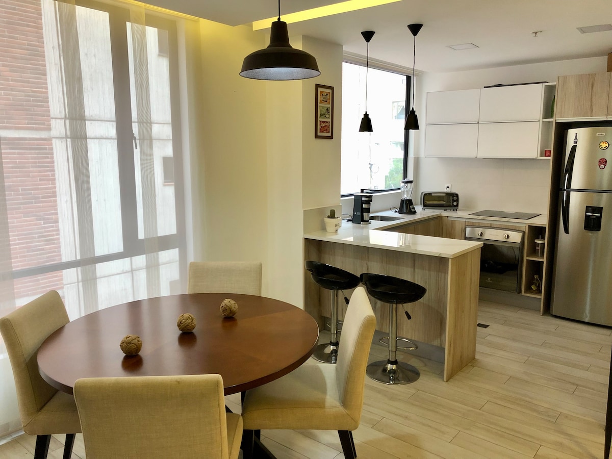We are located 3 blocks from La Carolina Park and the same distance from Metropolitan Park. From the airport, the drive is 40 minutes. Downtown Quito is 5 km away (17 minutes), and the Middle of the World City is 26 km away (40 minutes). Free parking, 24-hour reception, and free Wi-Fi. In the apartment you will find: 2 bedrooms 2 bathrooms living room equipped kitchen, dining room, washer and dryer 2 flat-screen Smart TVs 24/7 security