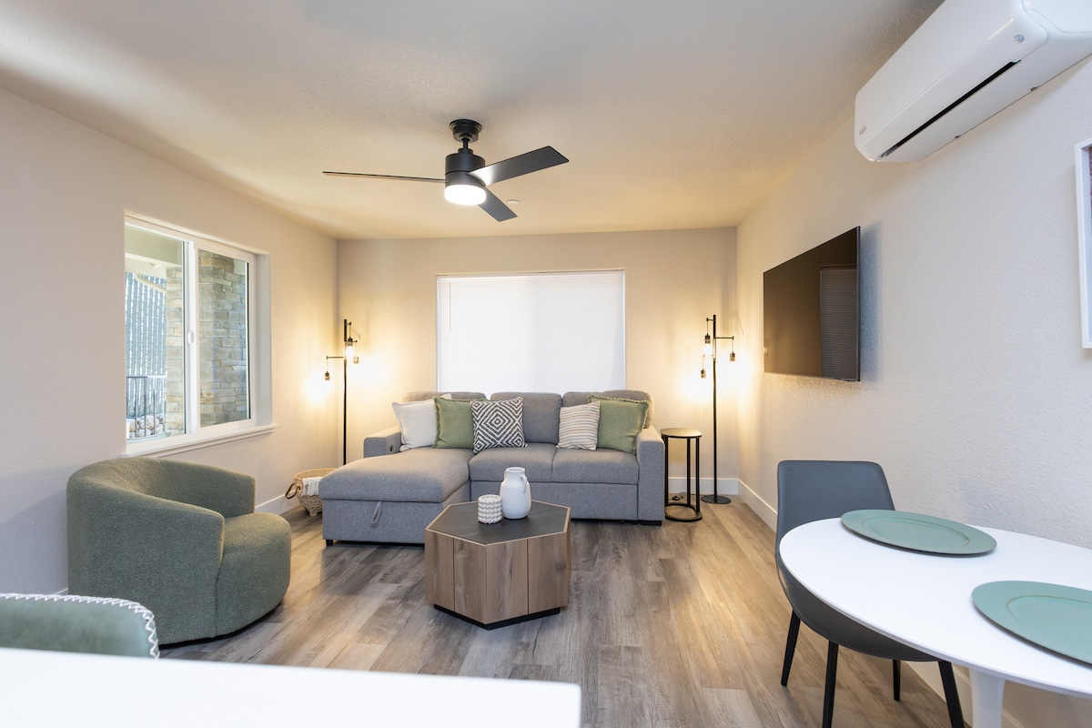 この2階建てのゲストハウスで山に逃れましょう。寝室1室とロフトスリーピング1室があり、素晴らしい釣り池のすぐそばにあります。 どこにもないような気分になりますが、スターバックス、食料品店、薬局、レストランなどまで数分です! 広々としたリビングルームには大型薄型テレビ、朝のコーヒー用のネスプレッソマシンがあり、キッチンの窓からは池の景色が見えます。 新品の家具と快適なマットレスがあなたをお待ちしています! 外に出ると、バスケットボールコートがあります!
