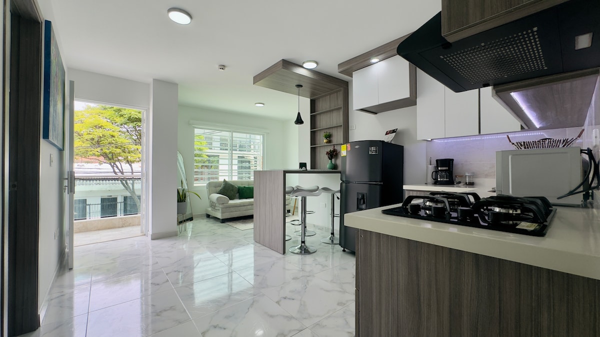 Acogedor, moderno, nuevo y con ubicación inmejorable. Este loft de 30 m² está pensado para quienes buscan descanso, diseño y conectividad en Cali. Ideal para parejas, nómadas digitales o visitas médicas. Disfruta A/C, WiFi 350 Mbps, cocina equipada, lavadora, Smart TV y blackout. Este smart building esta A solo pasos de clínicas reconocidas, el estadio Pascual y la vibrante zona gastronómica del Parque del Perro. 🏥 4 min a pie de Imbanaco – ⚽ 4 min a pie del Pascual.