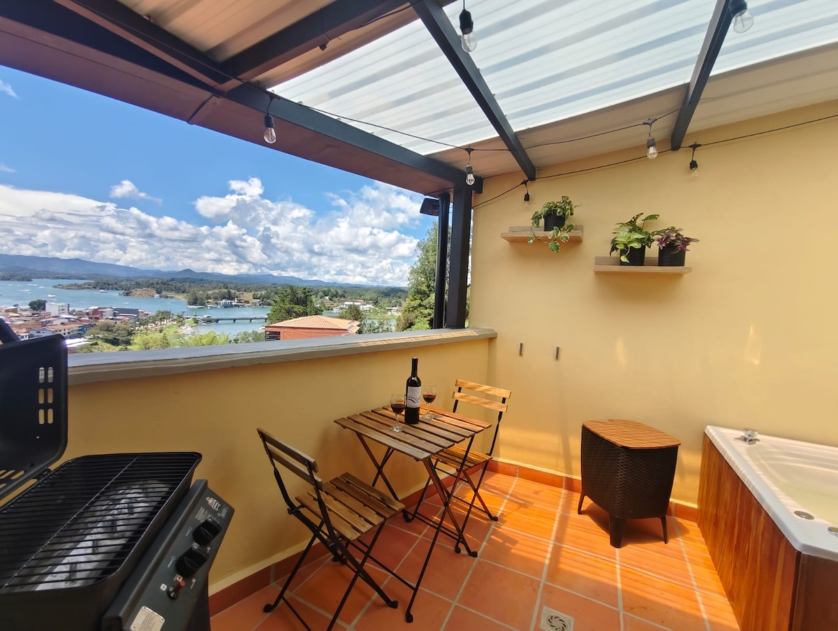 Disfruta de la sencillez de este alojamiento tranquilo y céntrico, jacuzzi privado dentro del apartamento con hermosa vista a la represa pero a tan solo 8 minutos caminando del parque principal y 5 del malecón de Guatape, tiendas de barrio, panadería y droguería a una cuadra. Hay una obra cerca trabajan de 7 am a 5 pm de lunes a viernes ! Ofrecemos disculpas si hay molestias!
