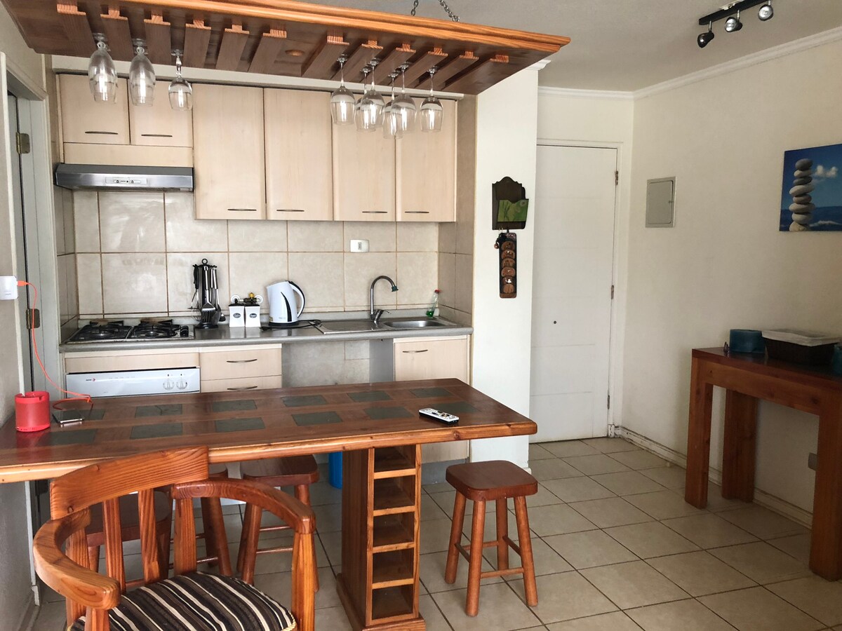 6名様用に設備が整った快適なアパートメント。暖房、リビングと主寝室にHDテレビ、Movistar光ファイバーWi-Fiが含まれています。この複合施設には24時間セキュリティが設置されています。 地下の専用駐車場が含まれています。 夏にはプール、一年中ウォータースポーツが楽しめるラグーン。 料金に含まれるカヤックをゲストにご用意しています。 この施設にはジムとジャグジーがあります(宿泊料金には含まれていません)。