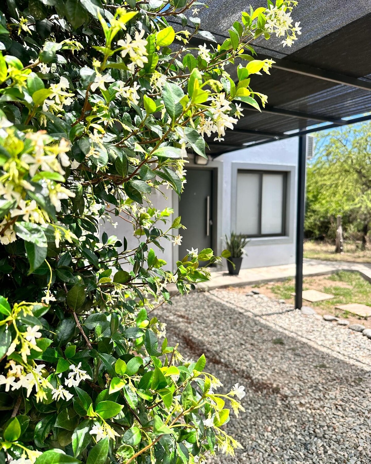 メルロの中心部から徒歩圏内の、セロ・デ・オロの木々に囲まれた静かでエレガントな空間でリラックスしてください。静かな場所で、キツネや歌唱鳥が訪れます。キングサイズベッド、エアコン、そして完璧な滞在のために必要なキッチンが備わっています。