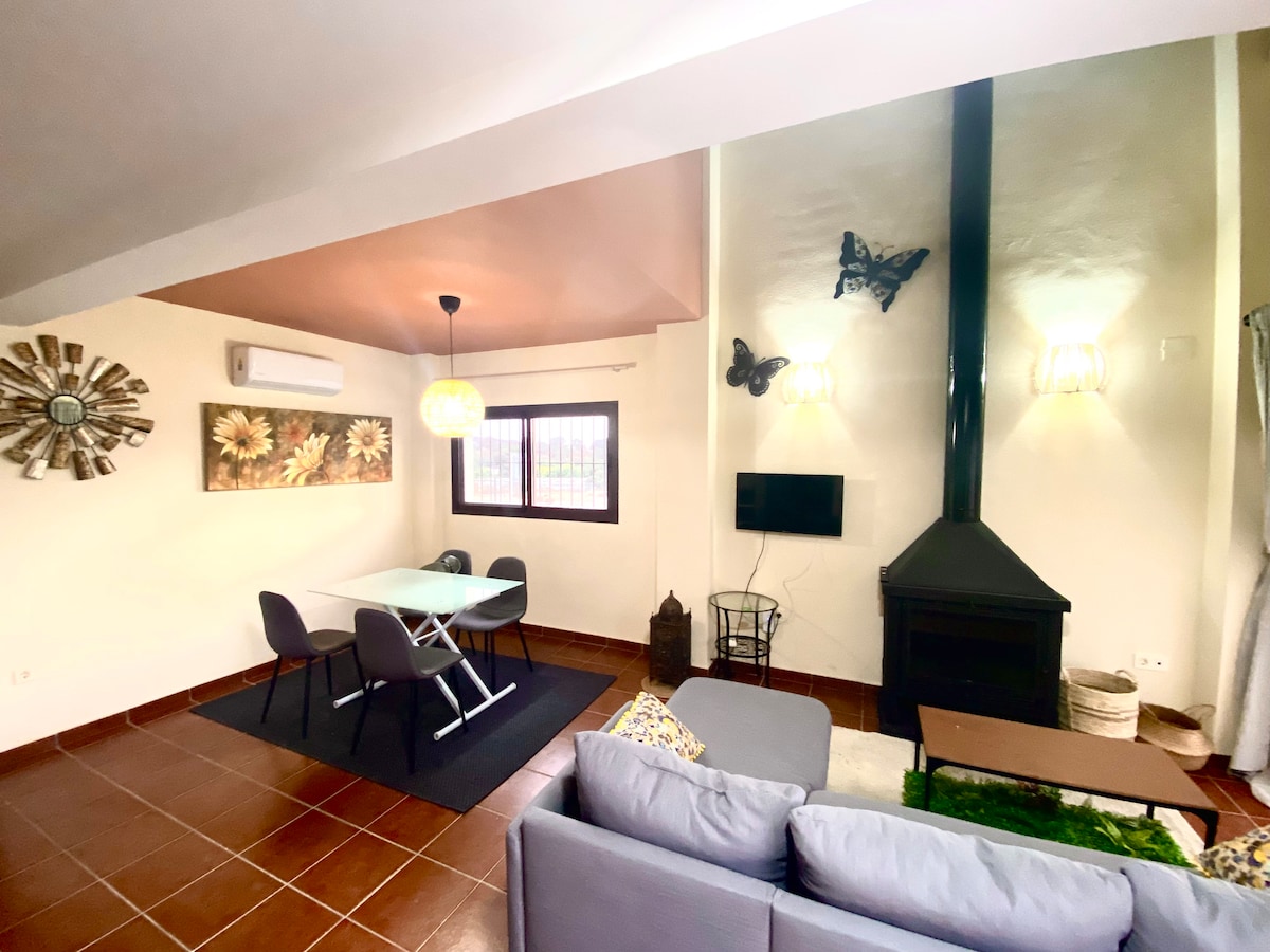 Bicentenary stone house in a secluded village between Aracena and Riotinto. Enjoy a barbecue with valley views, cozy fireplace, patio with loungers, and unforgettable sunsets. Silence, nature, and starry skies, with fast satellite internet for remote work, video calls, or streaming. Perfect for unwinding, reading, walking, or simply letting time stand still.