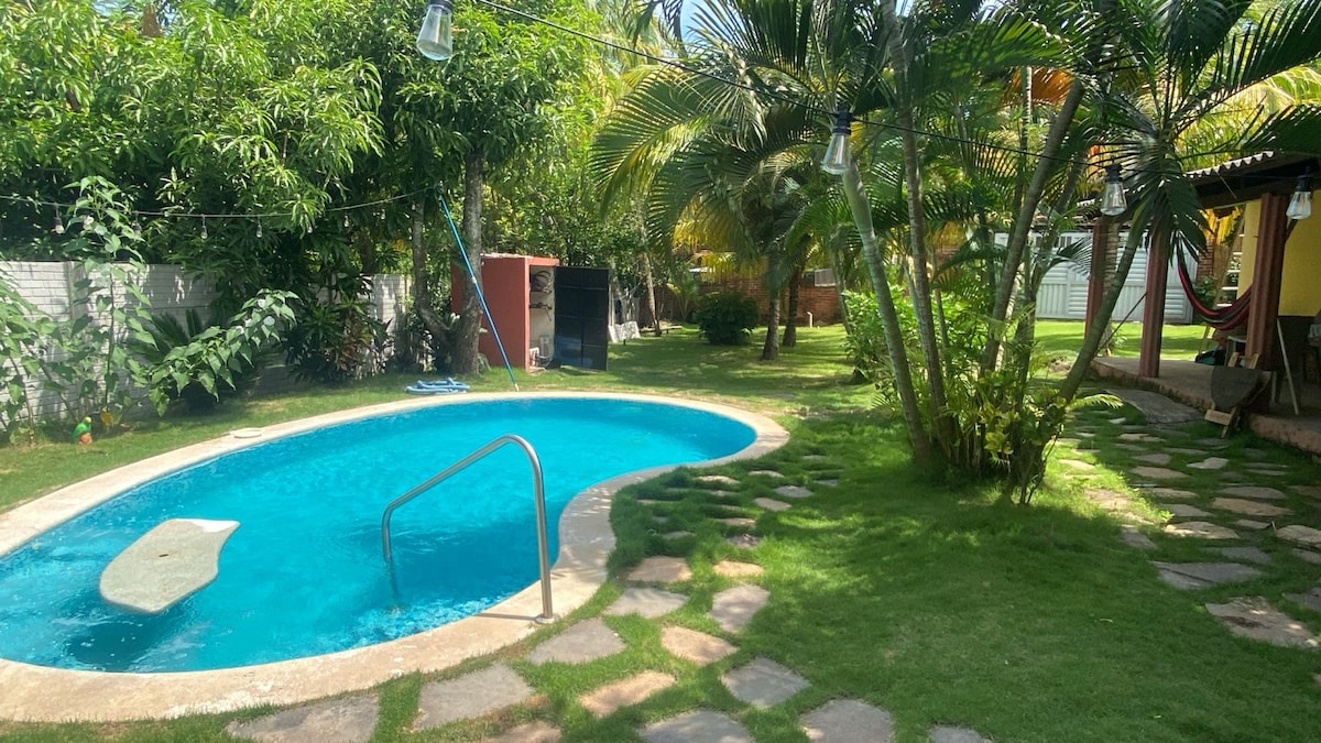 本物の自然環境を楽しみたいですか? 熱海ビーチのランチョ・エル・エンカントにお越しください。木々と自然の小川に囲まれた、居心地の良いヤシの木と木造バンガロー フロントビーチまで徒歩5分。 エアコン付きの2つの寮があり、1つは2台のベッド、もう1つは2段ベッドがあります。 ガスコンロとカップボード。 ハンモック廊下。 照明付きプール。 グリルとレンガでできたピザオーブン。 24時間365日対応のプライベートセキュリティ。 バスルーム 6名様に最適です。 ペットOK チェックインは午後2時、チェックアウトは午後2時です。