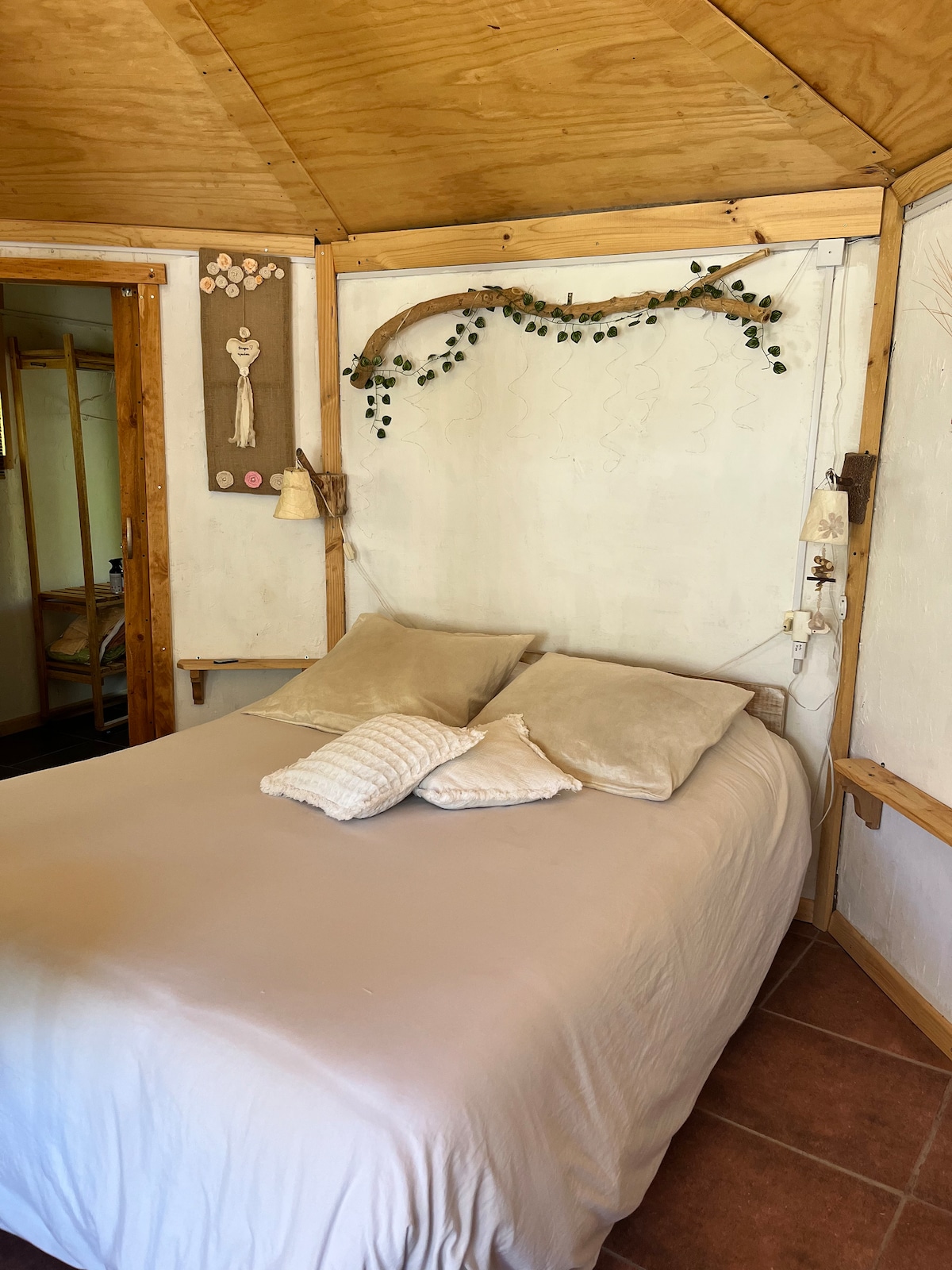 プラザ・デ・ピスコ・エルキから2ブロックの場所にある素朴でモダンなプライベートログハウス。レストランやビジネスの近くにあります。専用駐車場。専用バスルーム付きの寝室1室、ダブルベッド1台(シーツ、毛布、掛け布団、枕、クッション)。ベッドサイドテーブル1台、ランプ1台、ベッドステップ2台、ソファ、修復済みのアンティーク家具1台、Bluetoothスピーカー1台、冬用電気ストーブ1台。テラスにはキッチン、食器洗い機、ミニバー(鍋、食器、カトラリー、ティーポットなど)、炭火グリルがあります。周囲には植生がたくさんあります。