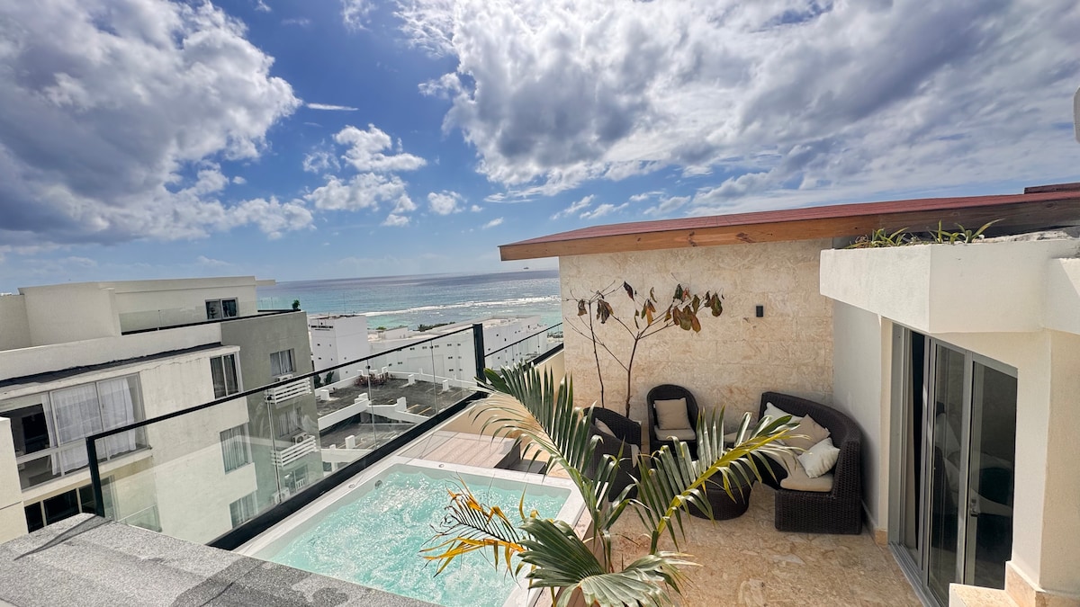 市内にあるジャグジー付きの豪華な2ベッドルームペントハウス。