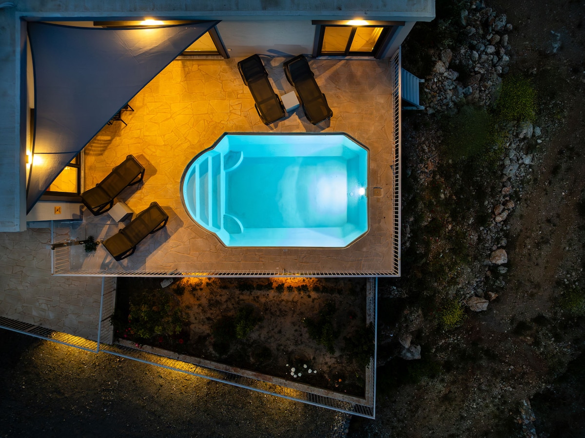 レビュー4件、5つ星中5つ星の平均評価中庭にジャグジーがあり、海を望む、谷間の静かな宿泊先