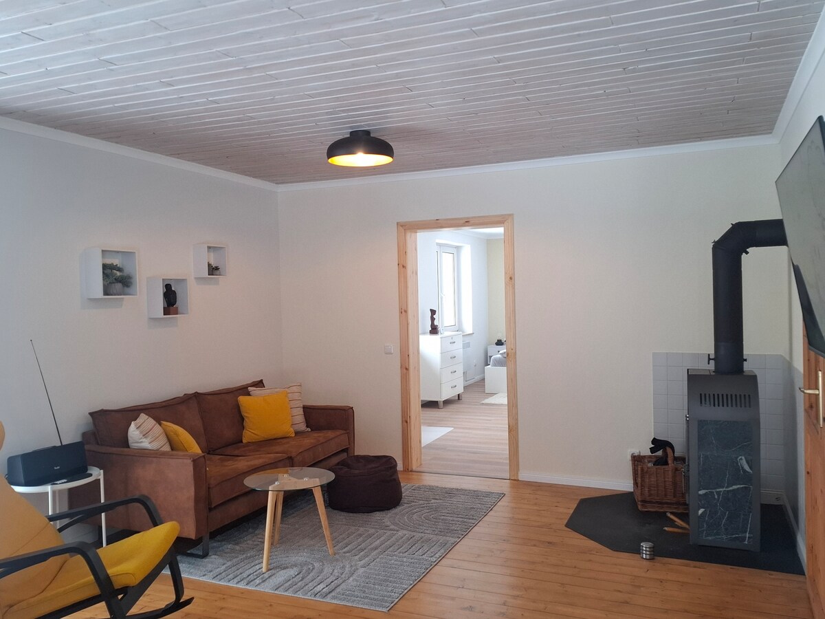 私たちと一緒に滞在中、あなたは愛情を込めて修復された、テラスとガーデンエリアを備えた広々とした建設用トレーラーに住んでいます。 長期滞在にも対応しています。冬には薪とブリケットで暖房し、すぐに心地よい暖かさになります。冷たい水は、霜が降りない時期にのみ、車内で流れています! 馬を連れてくることができます。1ヘクタールの 車両に直接接続します。 バスエリアとサウナはメインハウスから50mの場所にあります。