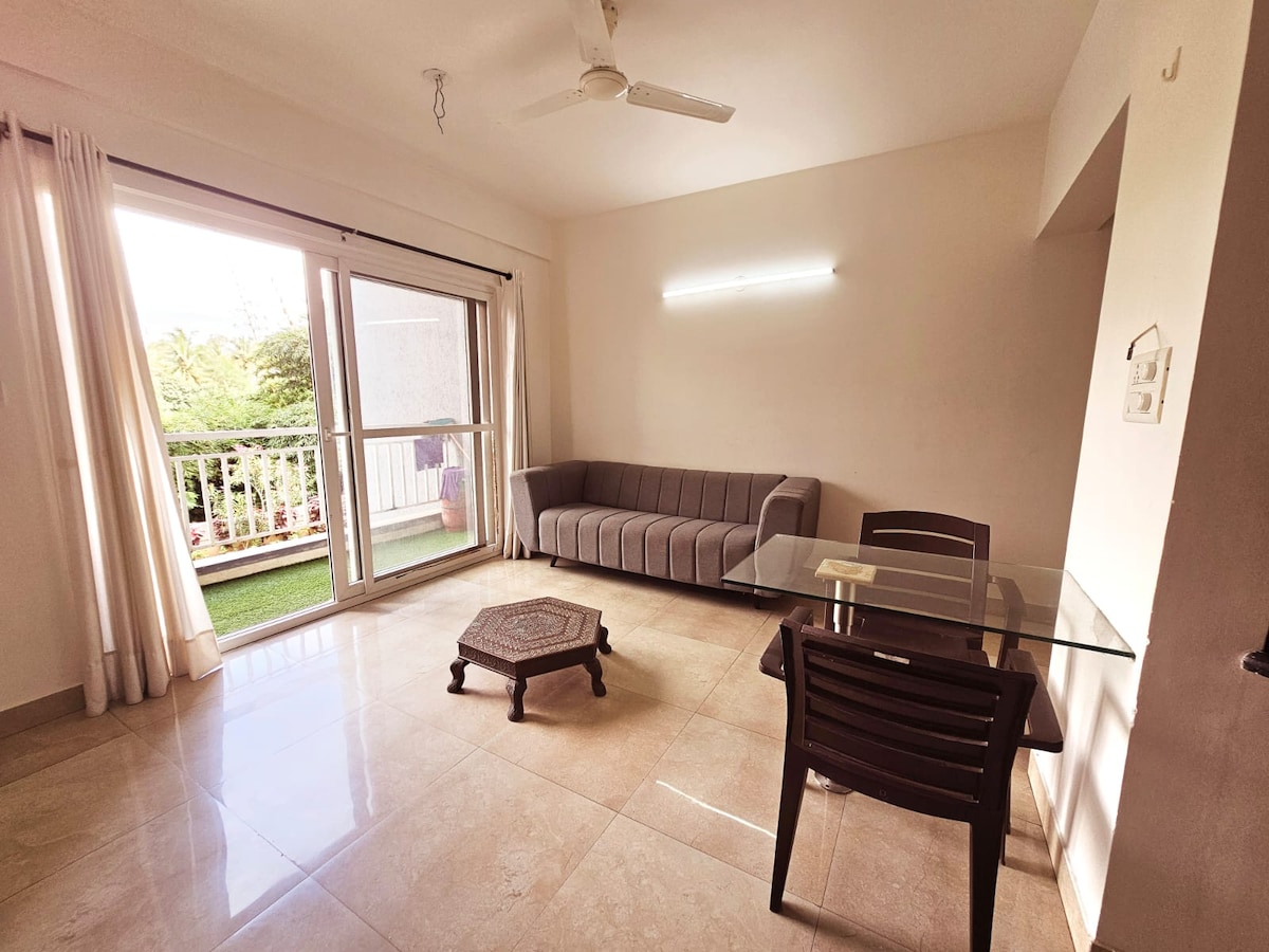 とても高級感があり、平和なエリアにある、家具が完備された広々とした1BHKのB&Bで、居心地のよい滞在をお楽しみください。周囲は緑に囲まれているこの家は、明るく、風通しがよく、モダンな設備とエレガントなインテリアが備わっています。メインのマーケットストリートや人気のカフェから徒歩わずか2分で、静けさと都会生活の完璧なバランスを提供します。アクセスが良い1階にあり、レジャーや出張に最適です。