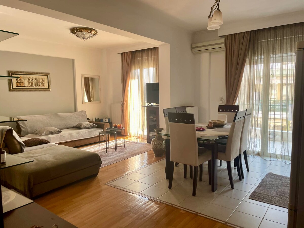 エヴォスモと接しているスタブロポリ地区にある最近全面改装されたアパートでの滞在をお楽しみください。 ショップ、ナイトライフ、レストラン、カフェ、バス停、スーパーなど、ゲストのニーズに応えるものがすべて徒歩圏内にあります。 市内中心部まで車で12分、バスで15分です。 私たちの目標は、あなたが自宅のように快適に過ごせるようにすることです。 レジャーやビジネスのご旅行に最適です。
