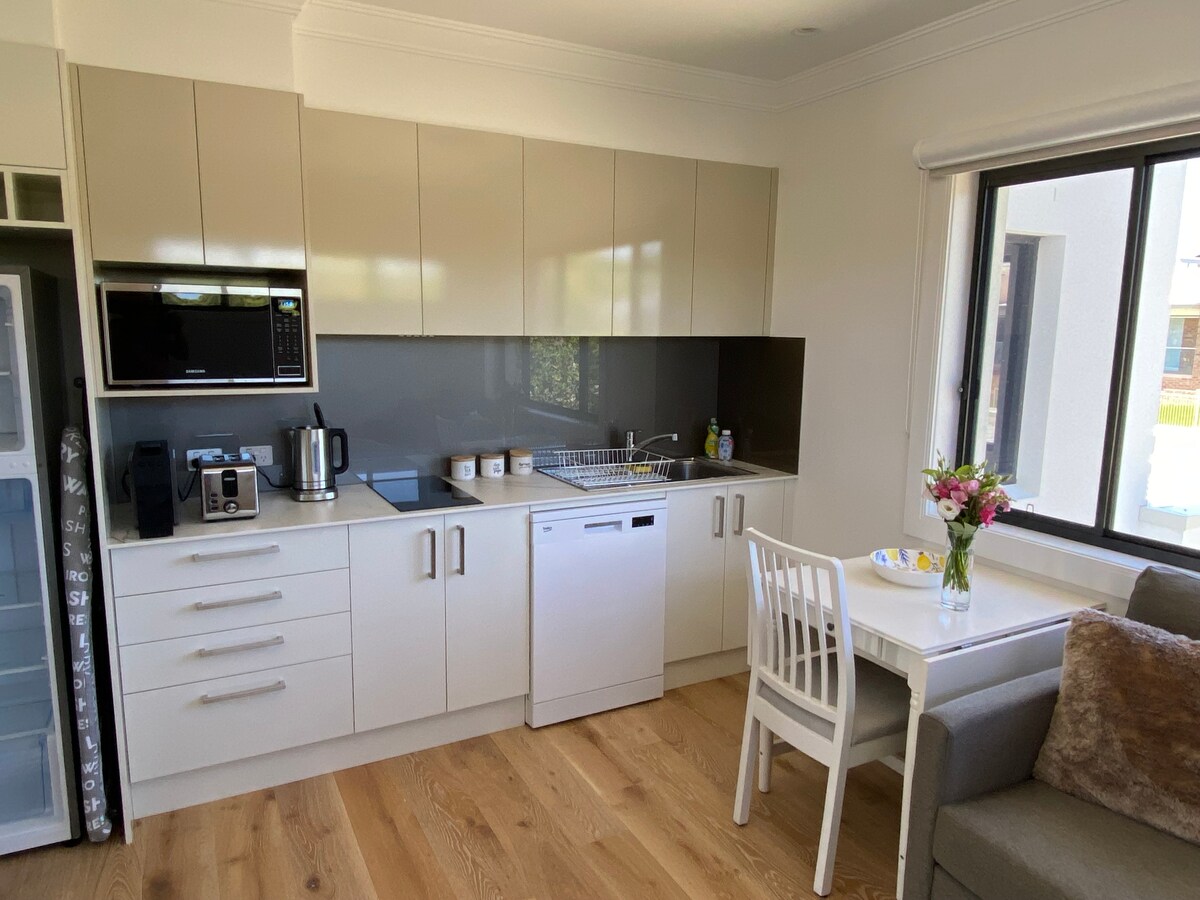 An ideal location across the road from One Mile Beach and adjacent to the Forster Golf course. This brand new self contained apartment features a full kitchen, designer furniture, ensuite, seperate laundry, onsite parking and air conditioning. The apartment has its own private access with outdoor seating and BBQ. Wifi and Netflix available. High quality complimentary bath products. Sleep easy with ‘Dunlopillow’ memory foam pillows. A 50m walk through a park to One Mile Beach.