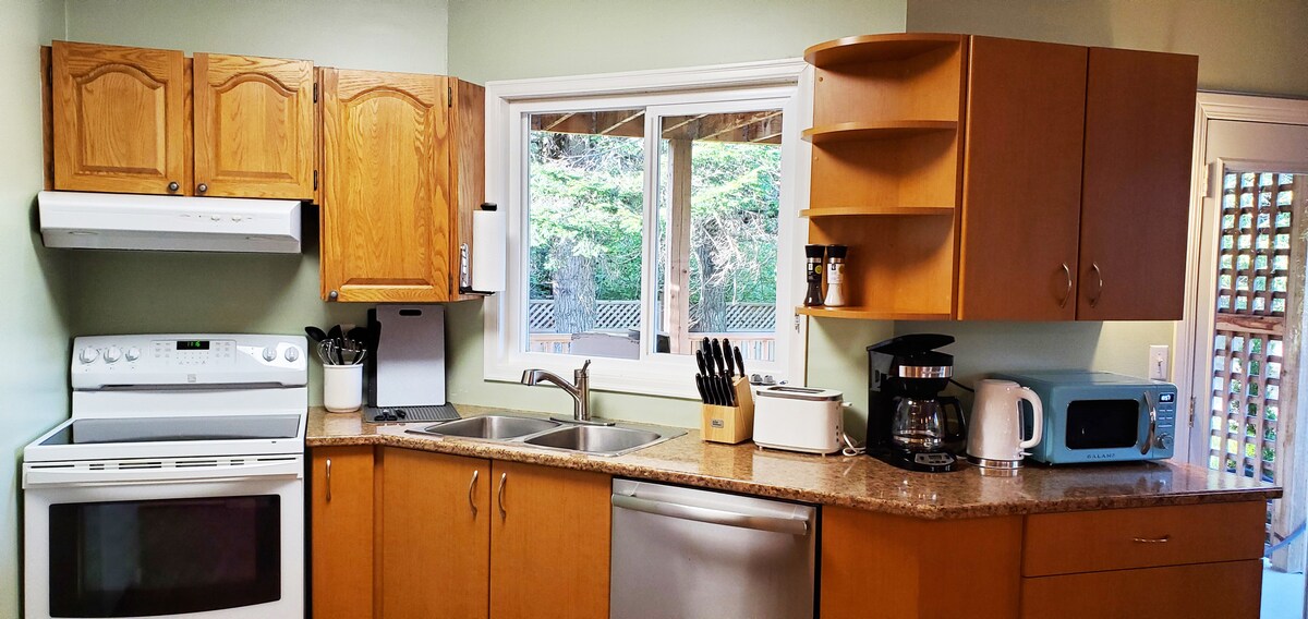 エルクレイクパークの隣にある2エーカーの敷地にある私たちの家族の家の下層階にある専用スイートでくつろぎましょう。 フェリー、空港、ダウンタウンから15 ~20分、ブッチャートガーデンまで10分、ハイキングやサイクリングに最適な場所まで5分の中心部に位置しています。 近くには魅力的な農場やレストランがあります。 最寄りのバス停は2キロです。 スイートには、冷蔵庫、電子レンジ、キューリグ、基本的な食事の準備用ケトルが備わっています。 喫煙または香りのある製品は禁止です!