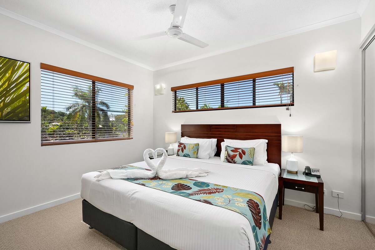 広大な熱帯雨林の庭園に囲まれ、ビーチやパームコーブのカフェやショップから数分の、お金の価値に見合う美しく穏やかな楽園です。 エアコン、無制限のWi-Fi、特大のHDストリーミングテレビ、リクライニングラウンジがあり、くつろぎ、リラックスできます。 4つのプールと設備の整ったジムもご利用いただけます。 ご家族連れの場合は、5名目(お子様)用の折りたたみベッド、ハイチェア、ベビーバス、ベビーベッド(ベビーベッド用リネンはご用意しておりません)をご用意しております。 設備・器具のそろったキッチンには食器洗い機が備わっています。 洗濯機と乾燥機。