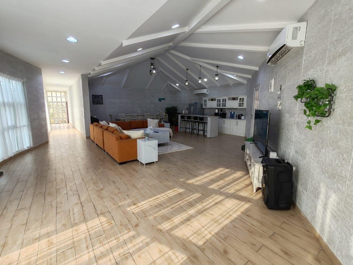 家族連れやグループに最適な、静かで広々とした家です。 マスターベッドルーム5室、メイドルーム1室、大きなホール、冷蔵庫、洗濯機、ガスバーナー、ウォータークーラー付きキッチンがあります。 オープンテラス、前庭と裏庭、駐車スペース3台分をご利用いただけます。 Wi-Fiと必需品がすべて揃っています。服を持ってくるだけで入居できます!