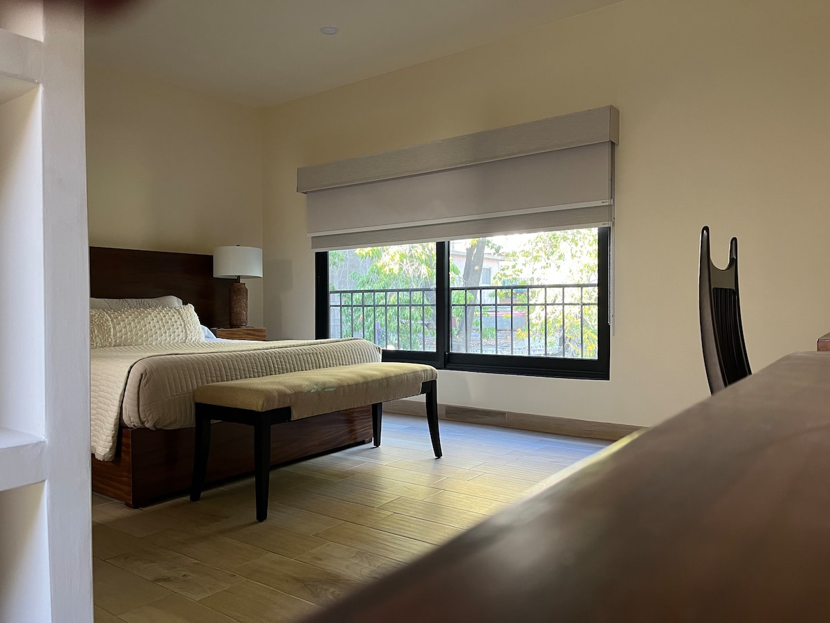 "BRAND NEW-REMODEL APARTMENT CENTRALLY LOCATED Located 5 mins from downtown Ensenada, street parking right outside the apartment entrance, very quite and secure neighborhood. Living room with a 50" smart TV, with a big desk, and a full sofa bed-Kitchen is fully equipped with a stove, fridge, coffee maker, toaster, pans, wine glasses. 1 private bedroom with a queen, and a sofa bed and a smart TV/Direct tv. 1 1/2 bathroom, portable heater in the living room,2 ceiling fans, A/C only in bedroom. “