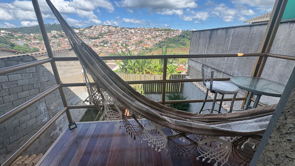 Casa pet friendly com banheira e vista da Serra