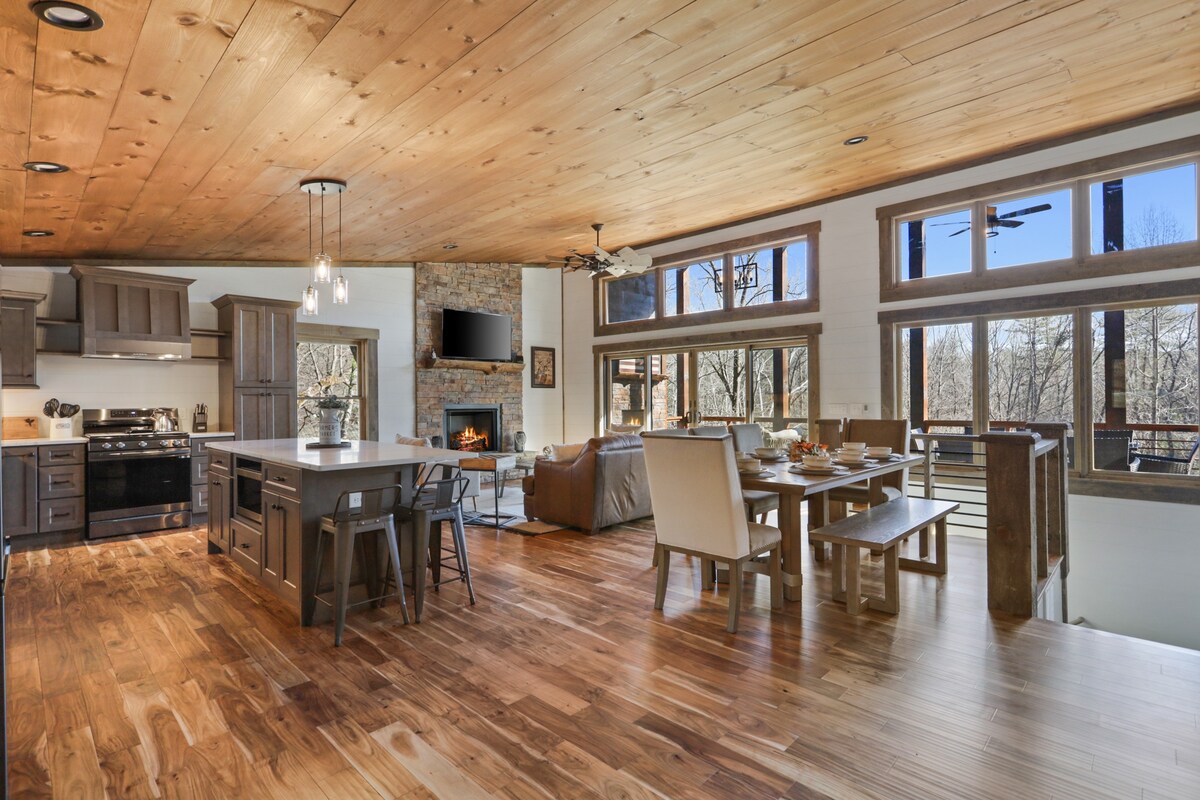 The Hickory Grove Haven brings a fresh new vibe to your next Blue Ridge mountain getaway! With all seven of our North Ridge Escapes properties, we strive to raise your expectations for your vacation rental experience! Every inch of this newly built house was intentionally designed to provide YOU with rest and rejuvenation of your mind, body, and soul. Large windows provide a picturesque wooded scenery and abundant natural light. Head outside to enjoy a soak in the spa, a movie by the firepl
