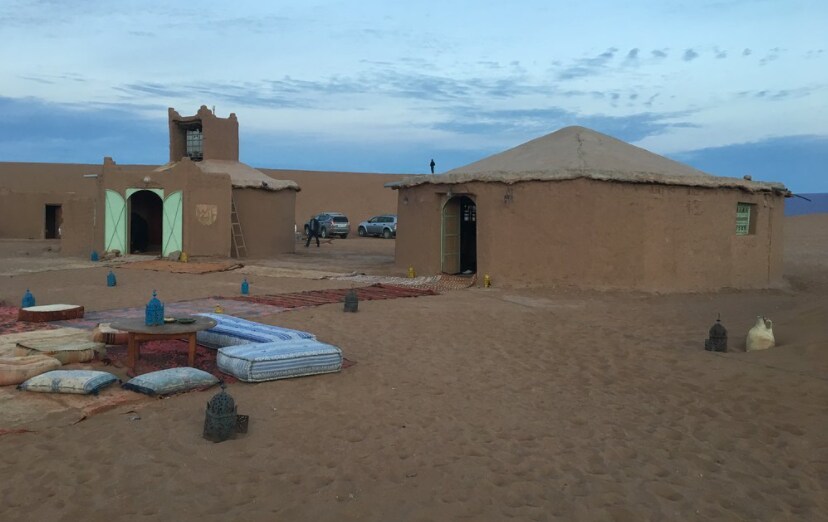 キャンプ場は、モロッコで最も高い2つの砂丘の1つ、チガガのふもとのすぐ下にあります。 キャンプは、私たちがリビングルームのように使用する大きな海の部屋、そしてダイニングルームのように使用する大きなハイマ、茅草の屋根のあるエリア、快適なマットレスを備えたエリアで構成されており、夜は焚き火をしてゲストと会っておしゃべりしたり、お茶を飲んだり、ベルベルの音楽を楽しんだりすることができます。 キッチンとトイレとシャワー付きの共用バスルームもあります。