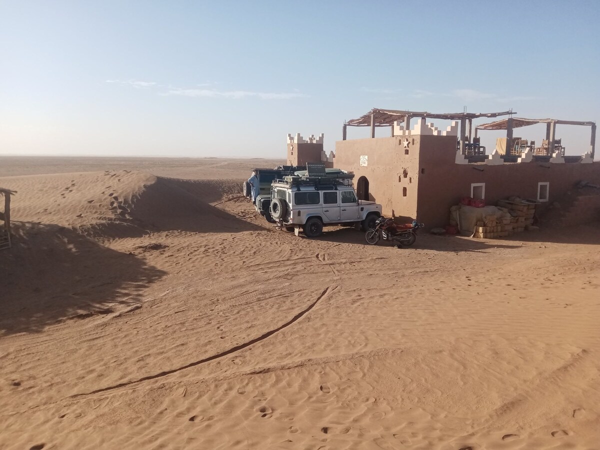 砂丘の間にある静かなキャンプで、サハラ砂漠の深い美しさを発見しましょう。 ここでは、星空の下で伝統的な音楽を聴き、おいしいモロッコ料理を食べ、ダブルまたはツインベッド、シャワー、フラッシュトイレを備えた4つの居心地の良いアドベスタイルの小屋で眠ることができます。 私たちはM 'Hamid El Ghizlaneから2 kmのところにいます。町の騒がしい通りから離れて、砂漠の平和と静けさを見つけることができます。ご到着時にM 'Hamidからお会いします。