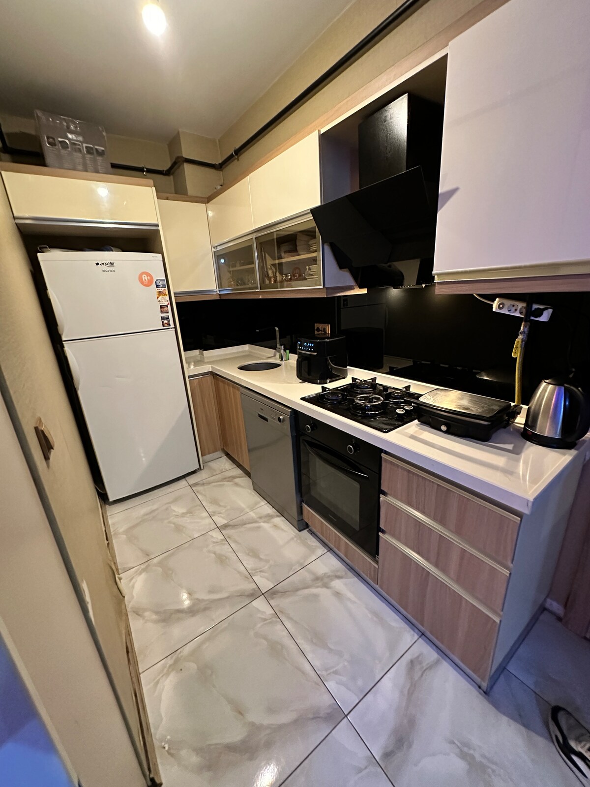 Three-room apartment, living room, and two bathrooms. All appliances are available. Internet is nearby. Arabic channels are available in the famous Crystal complex in Beylikduzu. Excellent complex. Safe for families. Children's playgrounds and a garden to enjoy the charming atmosphere of Istanbul day and night. We have staff and translators available 24 hours. Close to transportation, markets, tourist areas, shops, and shopping centers. Close to the Metrobus, a 5-minute walk. Close to the exhibi