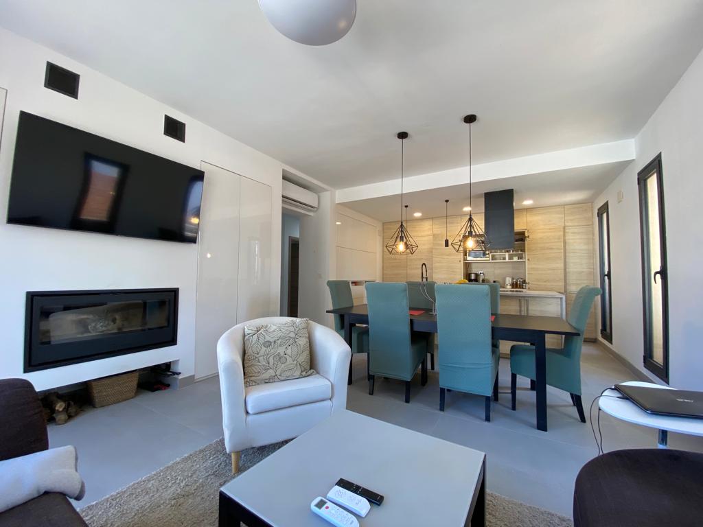 Recently renovated Mediterranean-style house with a private pool in the center of Alcalá de Guadaíra. It features a master bedroom with a 160 cm bed, walk-in closet, and en-suite bathroom, a second bedroom with a 135 cm bed, a full bathroom, and a living-dining room with a 160 cm sofa bed, Smart TV, and an open-plan kitchen with access to a private interior patio with a pool. Upstairs, there is a rooftop terrace and solarium where you can enjoy the sun and views of Oromana Park.