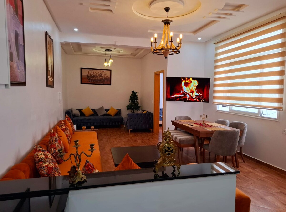ビーチから100メートルの場所にある美しいアパートは、すべてのショップに近く、新しく手入れが行き届いた小さな住宅の1階にあり、静かなエリアにあります。3つの小さなバルコニー、ダブルベッドルーム2部屋、バスルーム1部屋、独立したシャワー、暖炉付きテレビ(薄型画面)とインターネットWi-Fi、完全装備のキッチンとダイニングルーム(洗濯機、冷蔵庫、オーブン、ガスコンロ)を提供します。モダンなモロッコ風に豪華に家具が取り付けられ、設備が整っています。