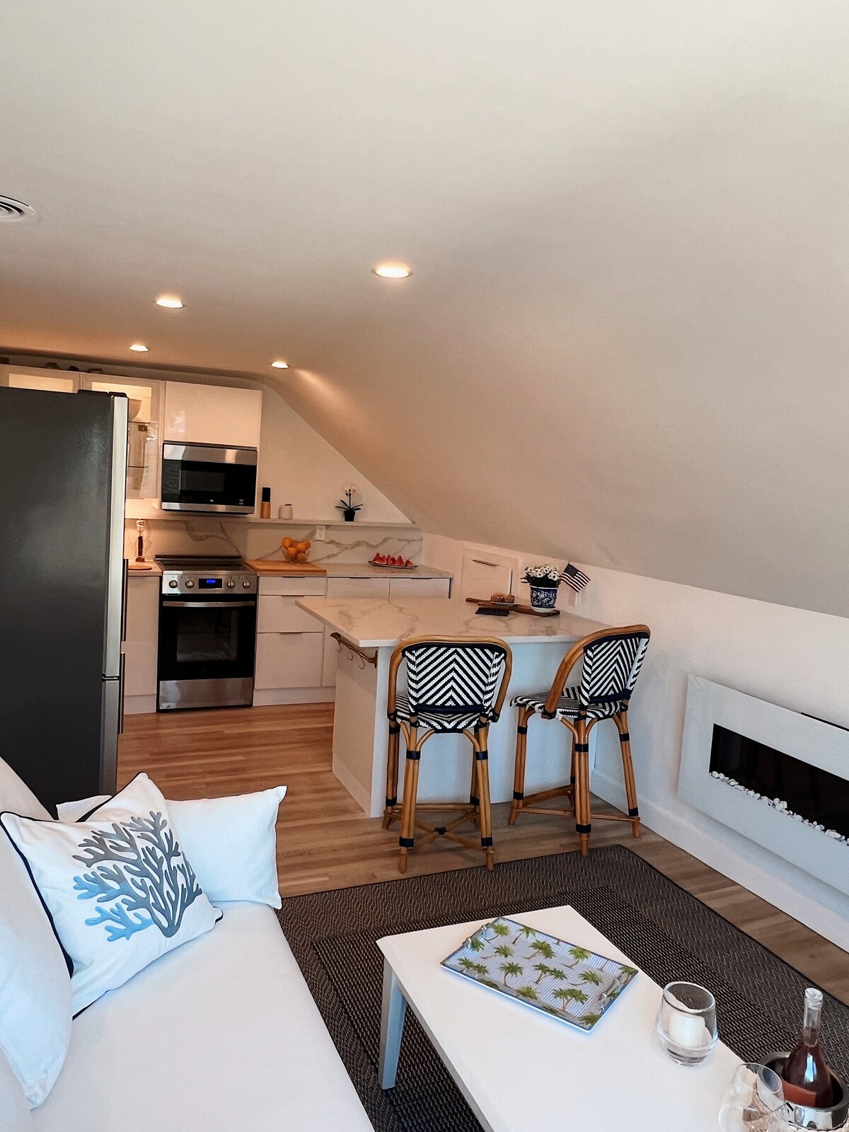 Enjoy a stylish experience at our centrally-located oceanfront condo. We are walkable to exquisite beaches and parks as well as downtown Gloucester where you will find a number of bars and restaurants to explore. If you feel like hanging in, share a meal/cocktail on the private deck. Perfect for a couples getaway or a group of friends looking to explore the North Shore without ever getting in your car.