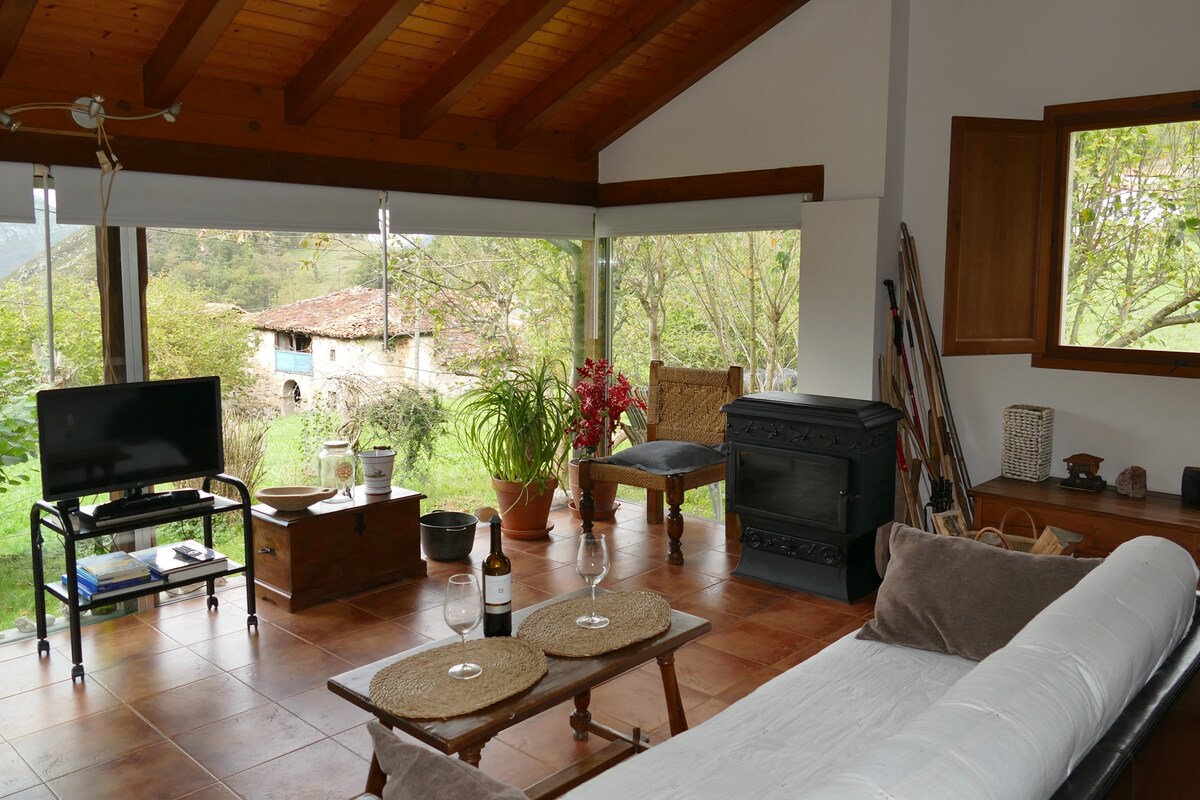 Alojamiento con jardín, recomendado para parejas con mascotas y que les gusten los gatitos. TOTAL PRIVACIDAD. Tranquilo pueblo de montaña, a pie del Parque Nacional de Picos de Europa, no hay bar ni tiendas. Desde la casa se pueden realizar rutas de senderismo y media-alta montaña. Escuela de escalada. Ciudad más próxima CANGAS DE ONÍS (20 minut.). WIFI. TV MOVISTAR PLUS. Últimos 3 km por buena carretera de montaña con espectaculares vistas. PAZ, DESCONEXIÓN y LIBERTAD ¡ESTÁIS EN VUESTRA CASA!.