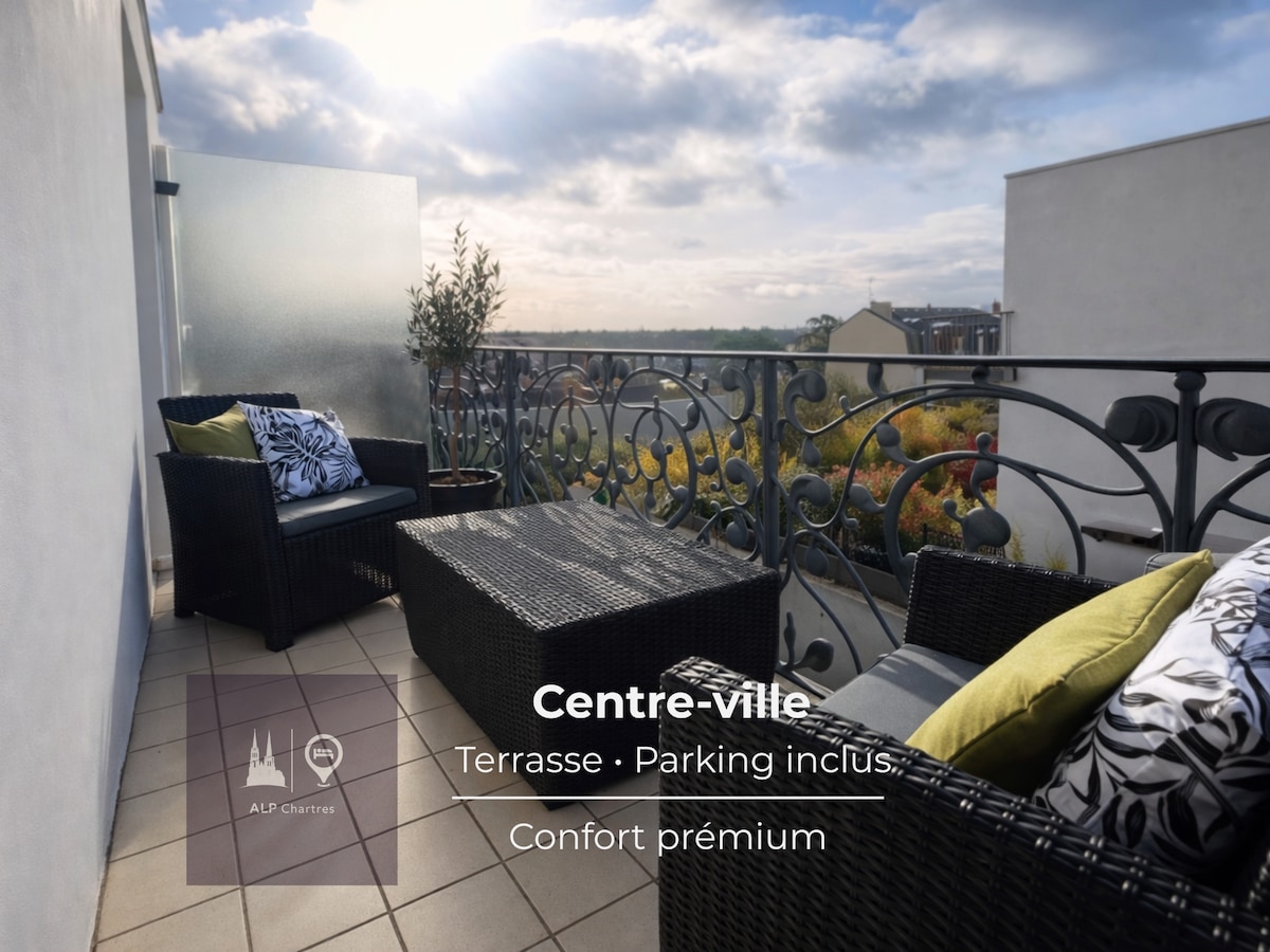 シャルトルの歴史的中心部にある明るいアパート、ラ・ポルト・アンシャンテへようこそ。 こだわりのデザインで、静かで快適な空間をお楽しみください。リビングルームからは、街の屋根と大聖堂の景色が見渡せ、リラックスしたり仕事をしたりするのに理想的な落ち着いた雰囲気を提供します。 アパートはポルト・ギヨームに位置しており、中心部まで徒歩で数分で行けます。 建物のすぐそばに無料シャトルバスが停まっており、駅や市内中心部へのアクセスが容易です。